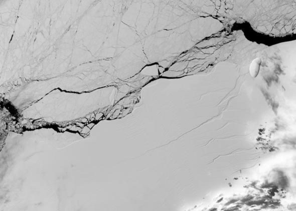 NASA uzmanlarına göre tablo görünümlü bu buz parçası, buzdağından yeni yeni kopmuş ve şekil itibariyle dikdörtgeni andırması ilginç bir tesadüf.