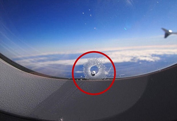 Uçak pencere delikleri, üç bölme arasında basıncı koruyarak bir cam kırılırsa diğerlerinin sabit kalmasını sağlar.