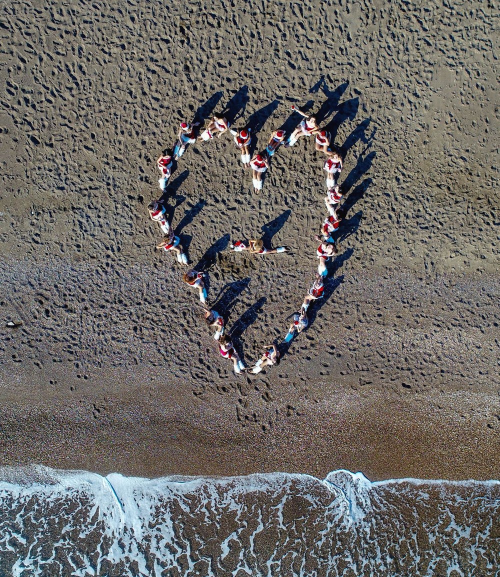 2021 yılına özel 21 mankenin kumsalda buluştuğu fotoğraf çekimlerinde dron da kullanıldı.