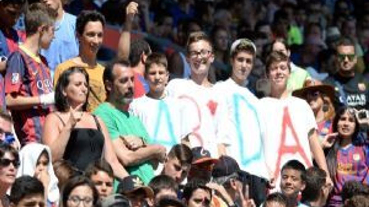 Barcelona'yla 5 yıllık sözleşme imzalayan Arda Turan, basın toplantısının ardından yeni takımının formasını giydi ve Nou Camp'ta sahaya çıkarak taraftarla buluştu...
