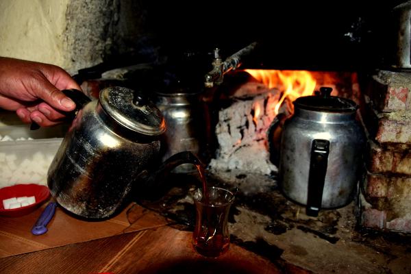 Muğla'nın Menteşe ilçesinin dağlık kesiminde kahvehane işleten Halil İbrahim Bingöl (56), bir asrı aşkın şekilde yapılan yöntemle çay demliyor. Bölgeye dağ yürüyüşüne gelenler başta olmak üzere yöre halkı, leziz çayı keyifle içiyor.