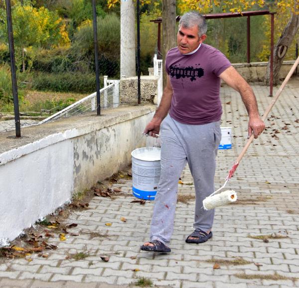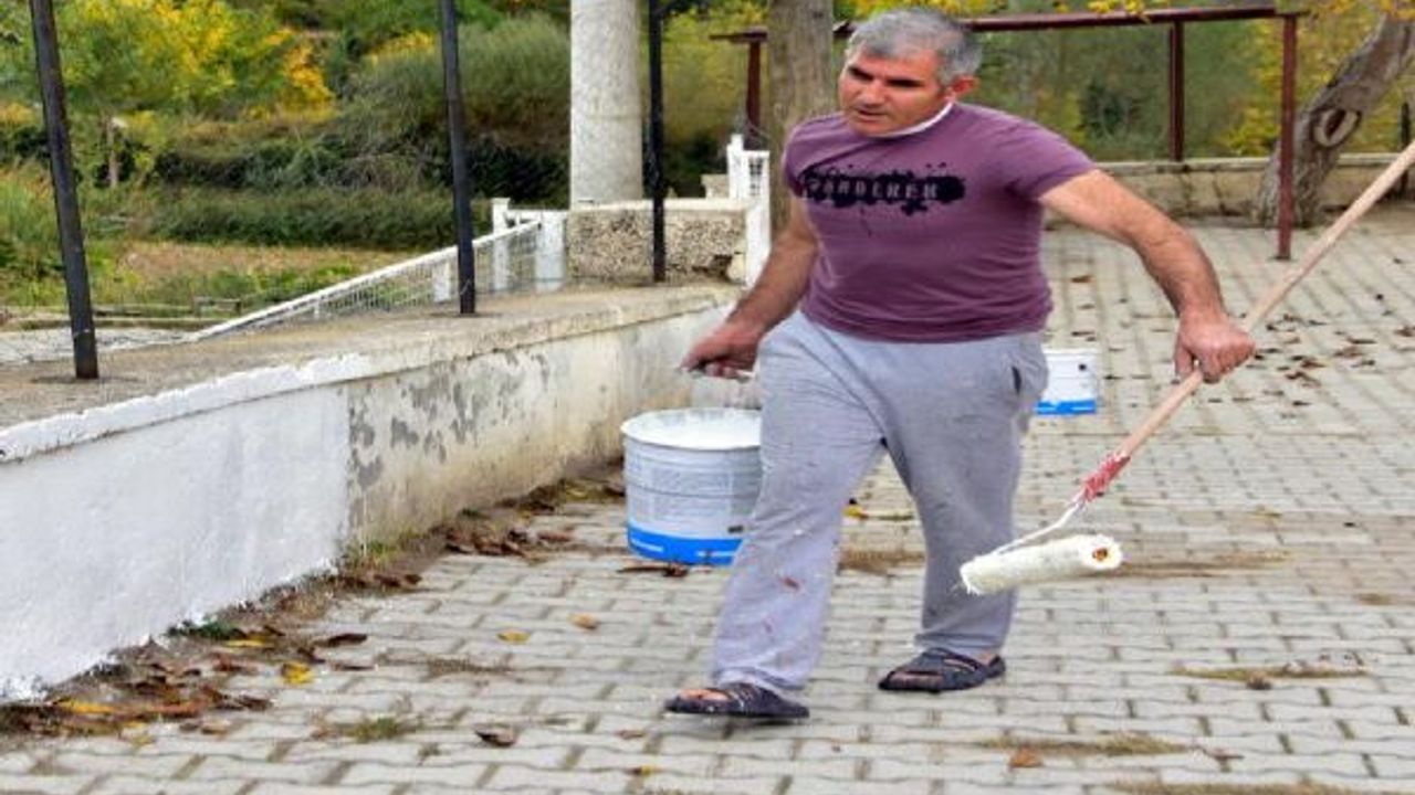 Muğla'nın Menteşe ilçesinin Dokuzçam Mahallesi'ndeki Dokuzçam İlk ve Ortaokulu Müdürü Reis Songur, idarecilik görevinin yanında okulun fiziki şartlarını iyileştirebilmek amacıyla 7 yıl önce başlattığı çalışmalarına devam ediyor. 10 derslikte 68 öğrencinin eğitim-öğretim gördüğü okula sabah takım elbise giyerek gelen, idare işlerini tamamladıktan sonra iş kıyafetlerini giyen okul müdürü Reis Songur, yaptığı çalışmalar ile okulu baştan aşağıya yeniledi.