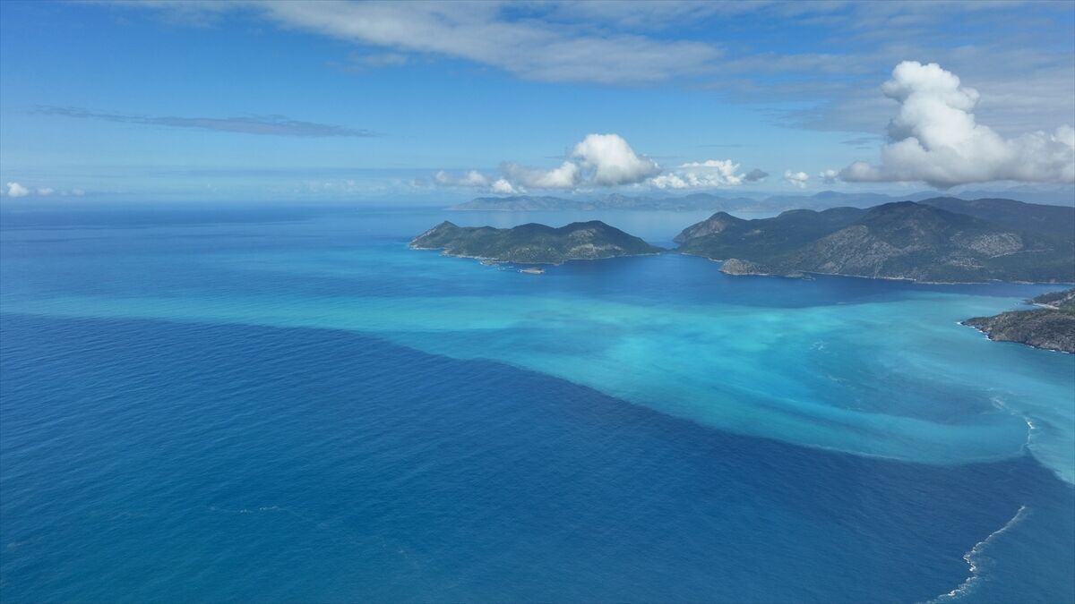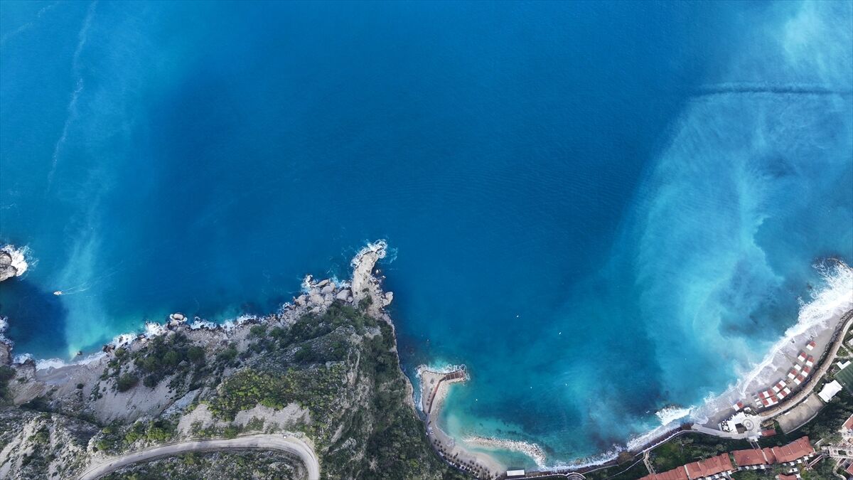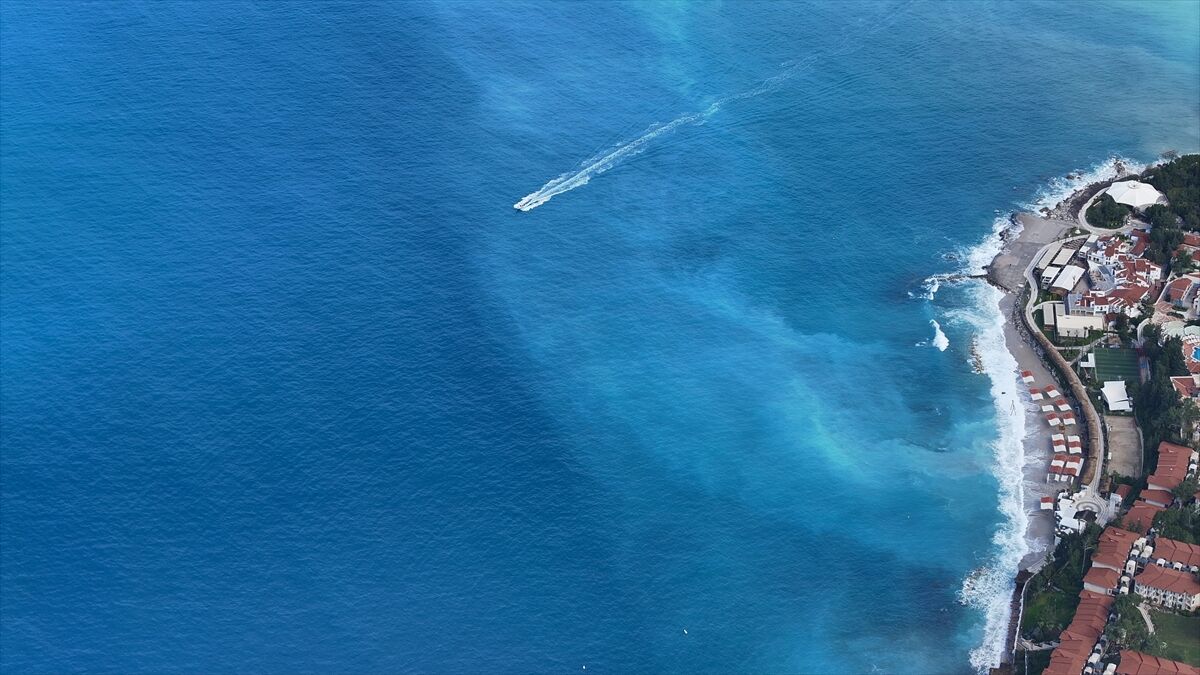 Turkuaza bürünen denizin eşsiz manzarası havadan görüntülendi.