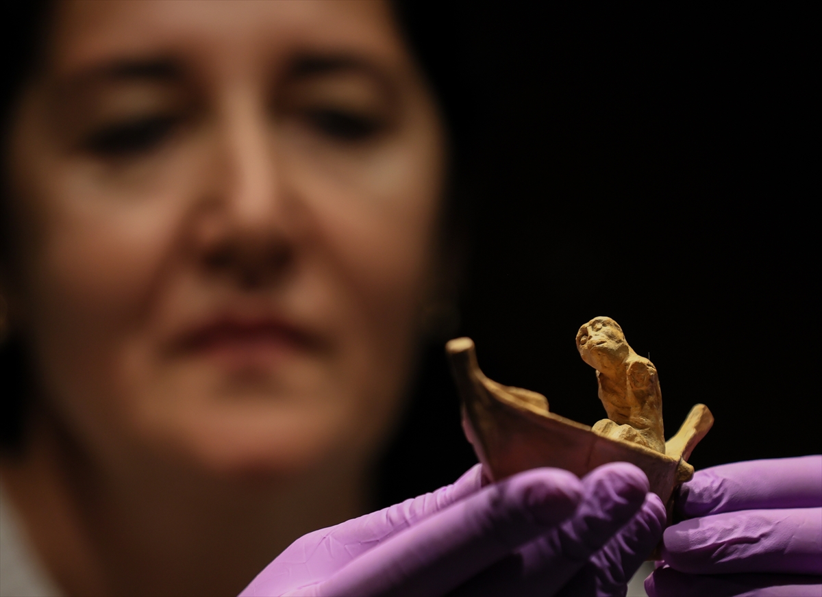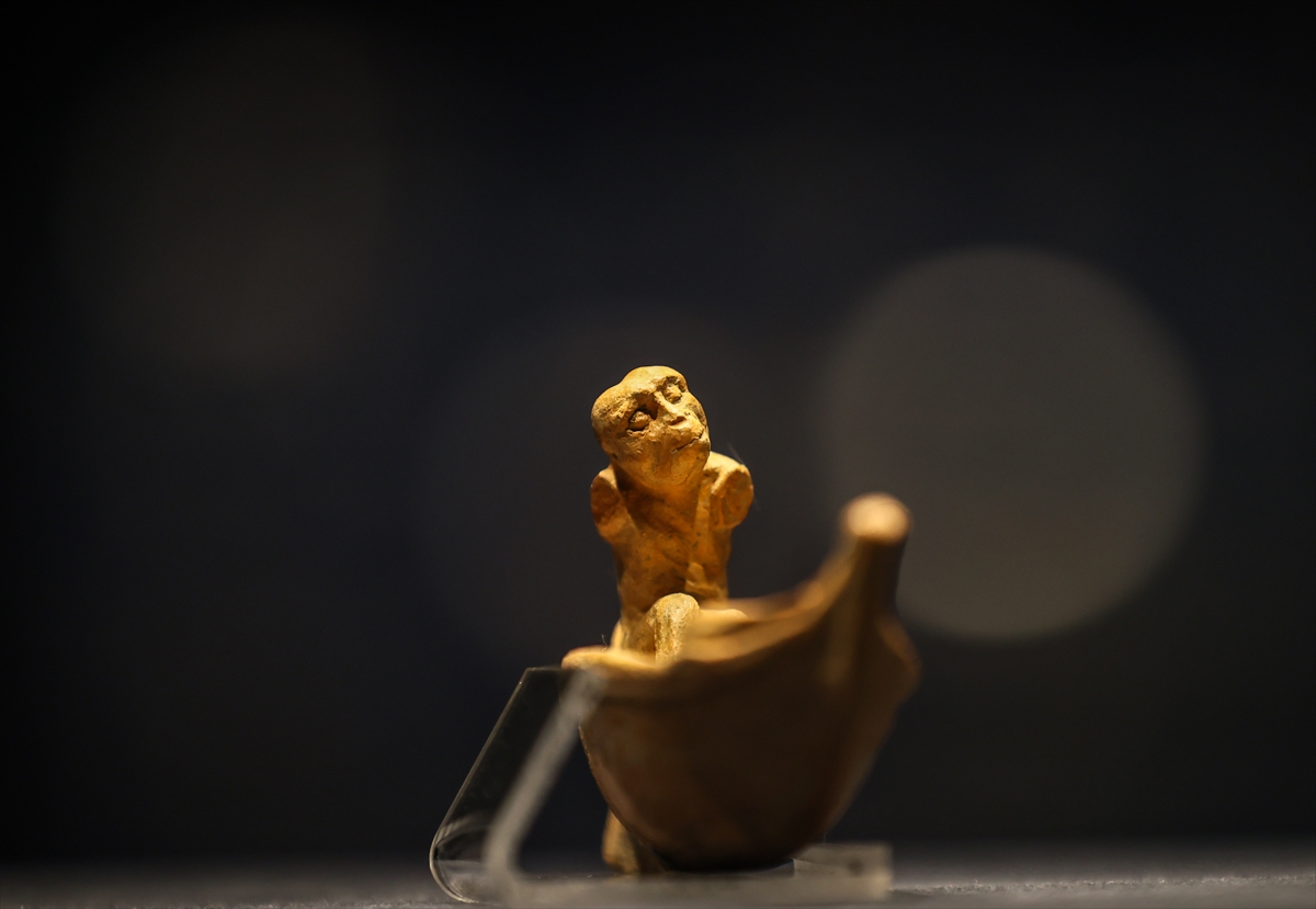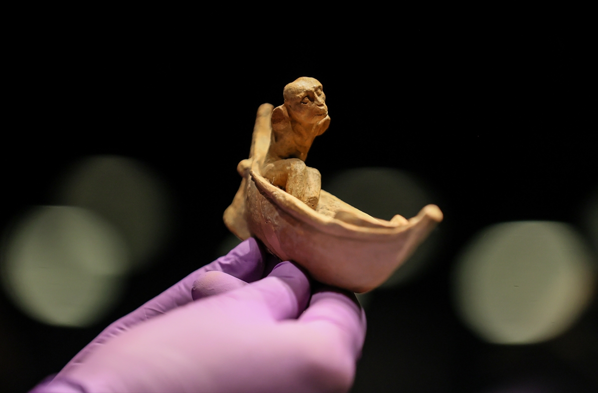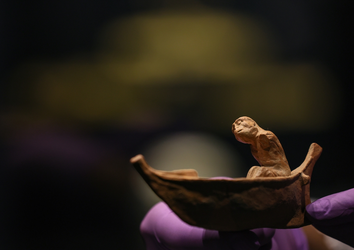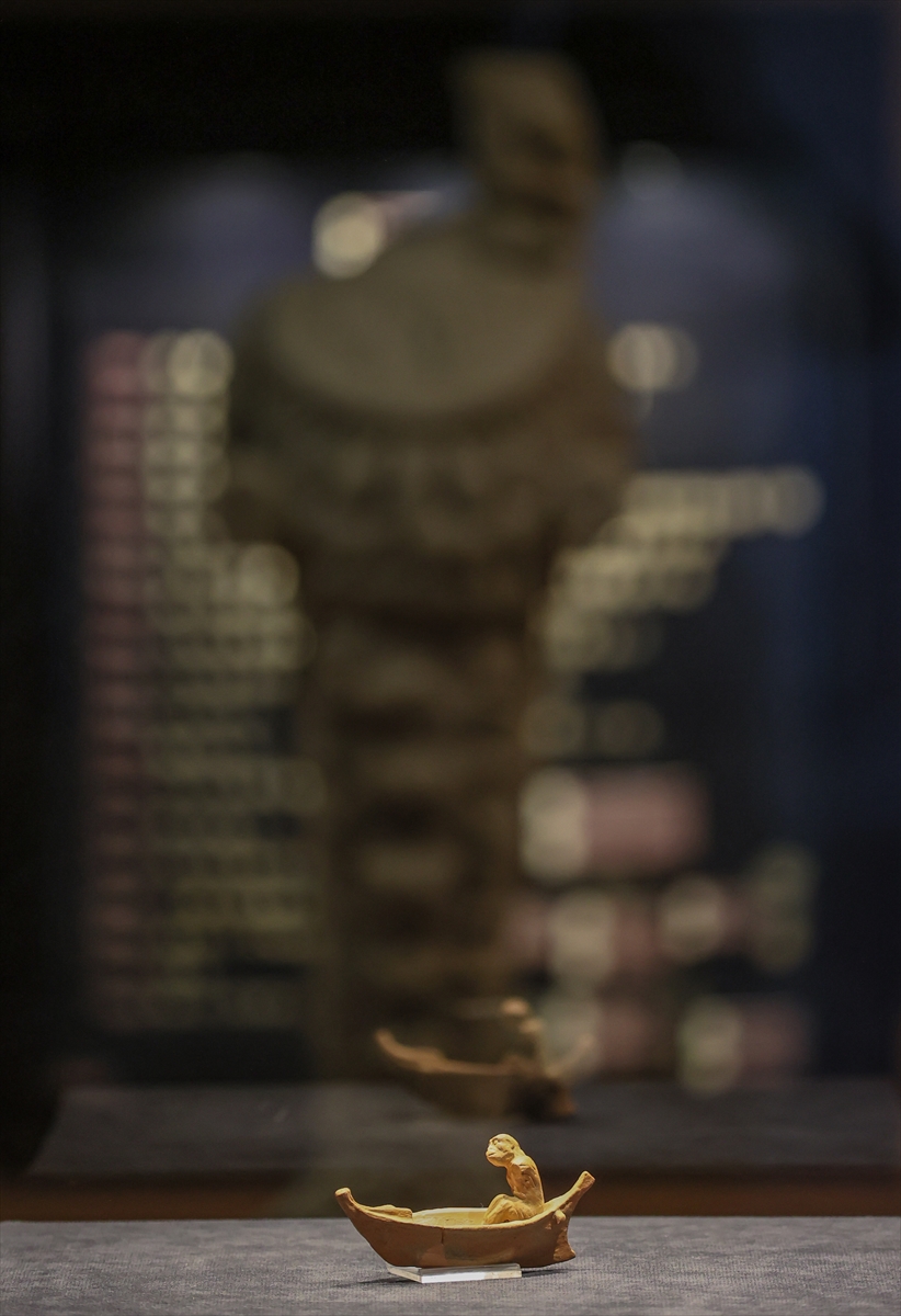 Urla'daki Klazomenai Antik Kenti kazısından 2014 yılında çıkarılan sandal ve içindeki kayıkçının pişmiş topraktan heykelciği de serginin parçaları arasında yer aldı.