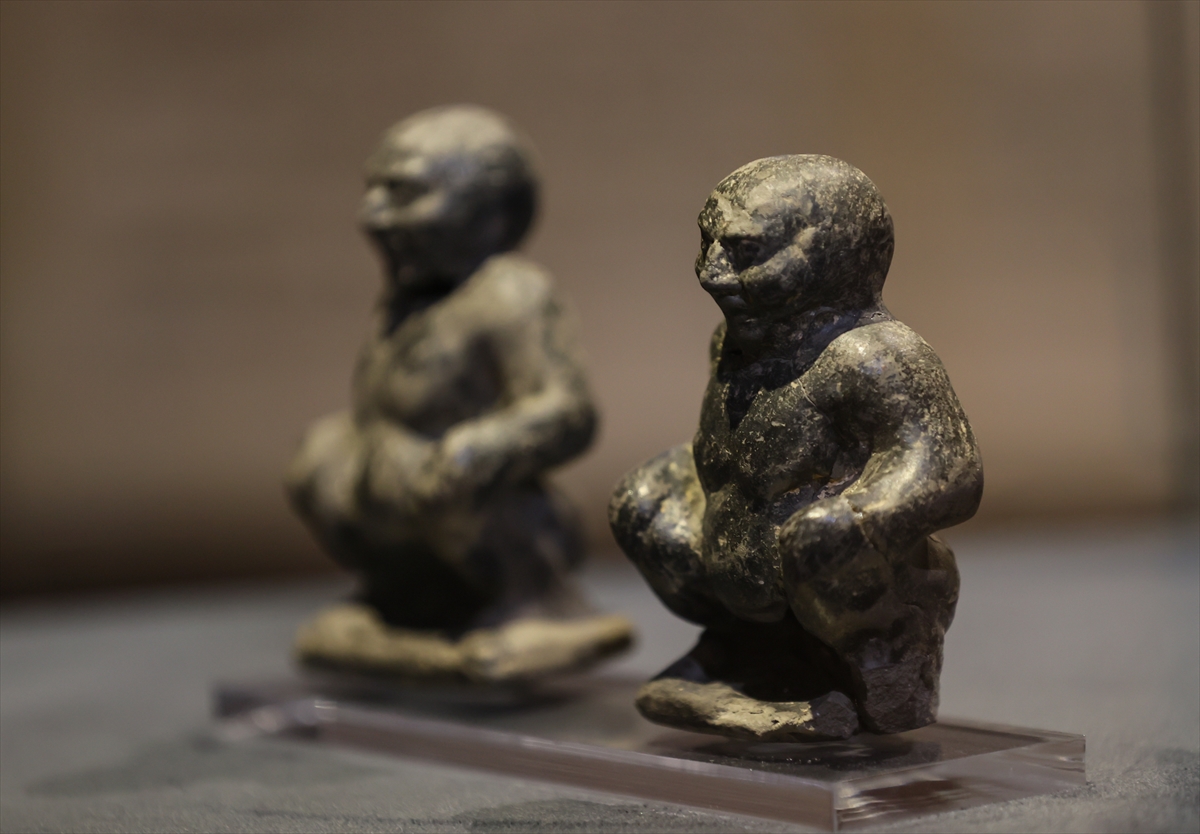 Saçsız, iri gözlü, kemerli burunlu, göbekli ve çömelmiş vaziyetteki erkek heykellerinin yaklaşık 2 bin 600 yıllık olduğu tahmin ediliyor.