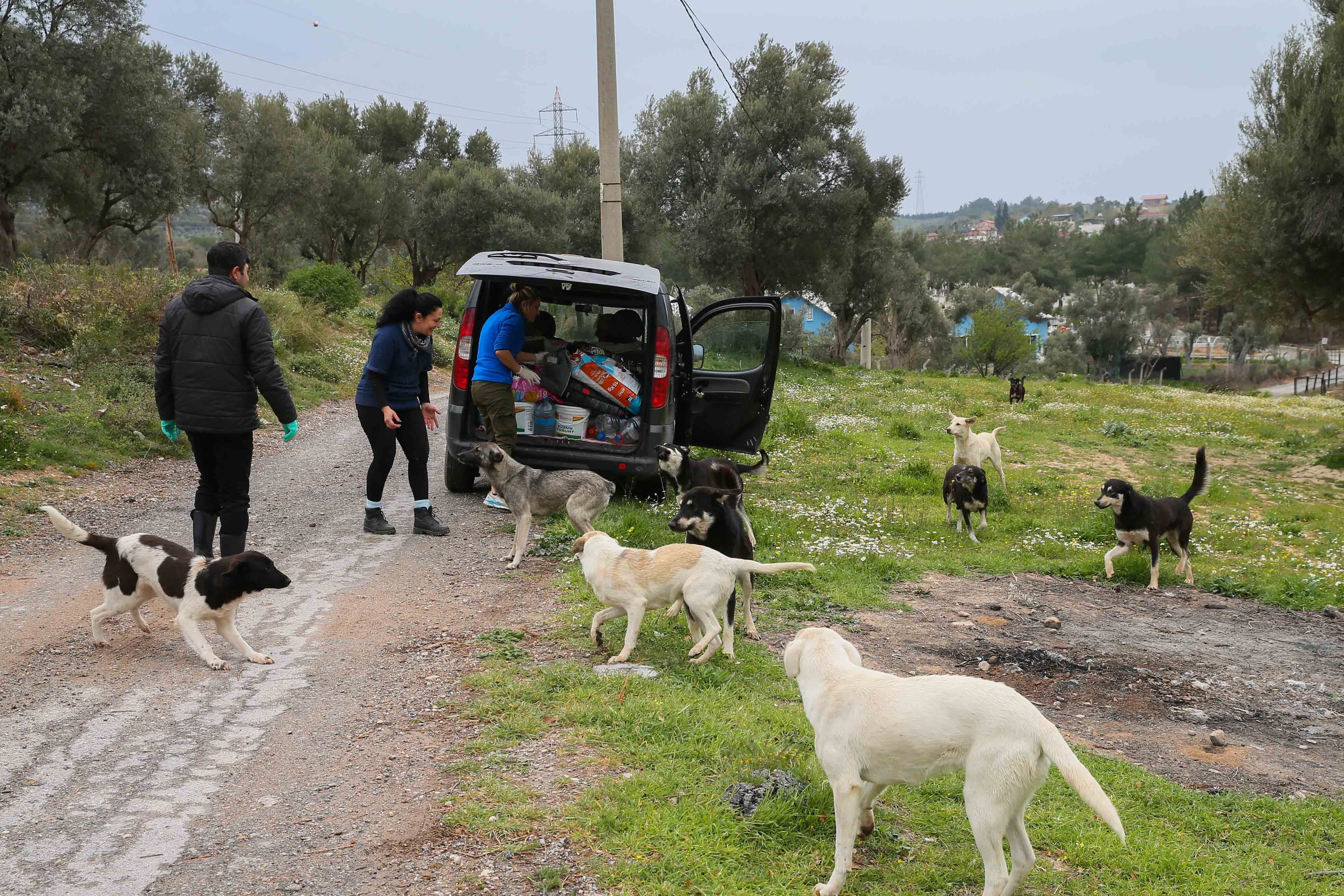 Yemeği kendi araçlarıyla Kaynaklar köyünde köpeklerin yaşadığı alanlara bırakan 20 gönüllü, besledikleri hayvanlardan tıbbi desteğe ihtiyacı olanların da bakımını gerçekleştiriyor.