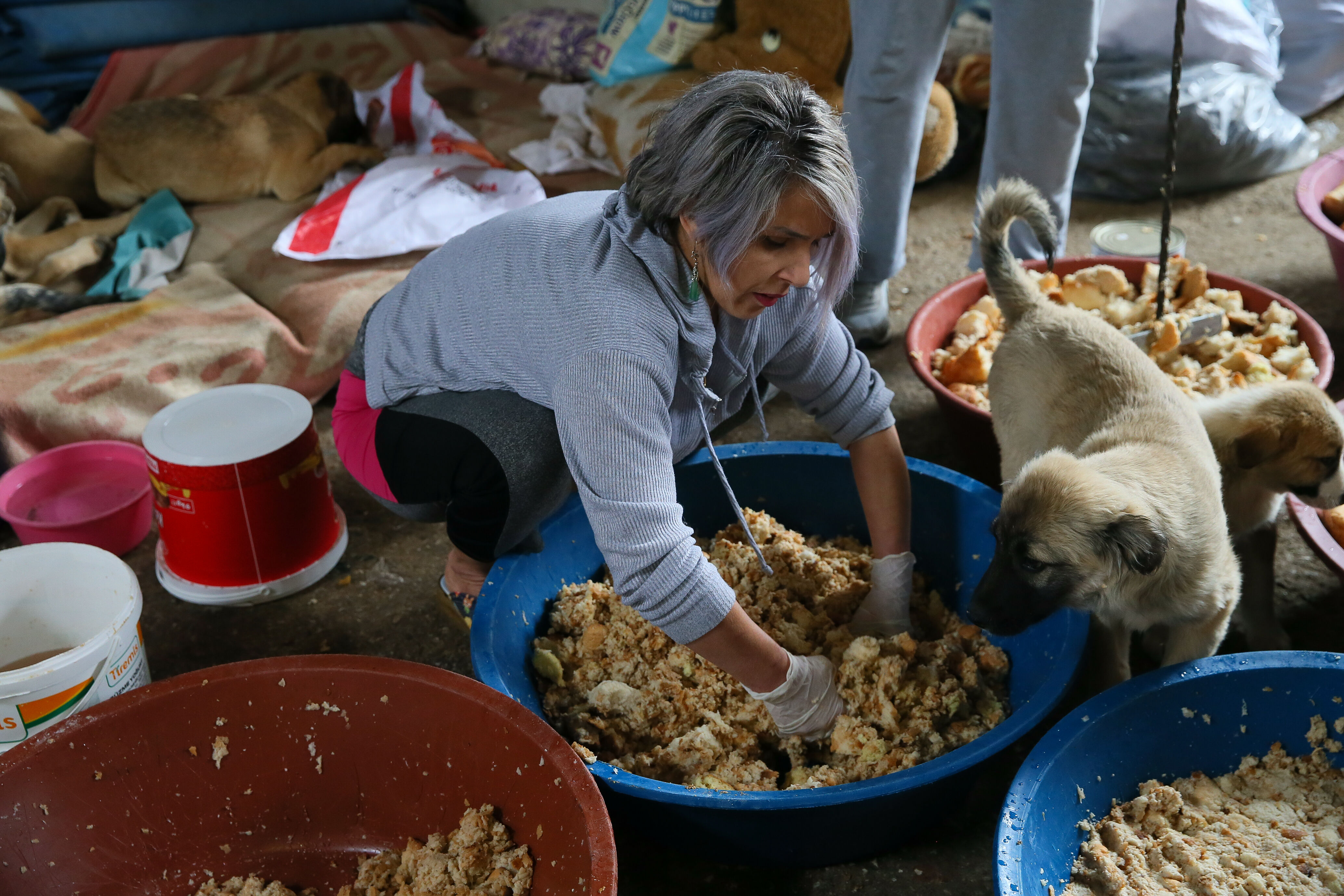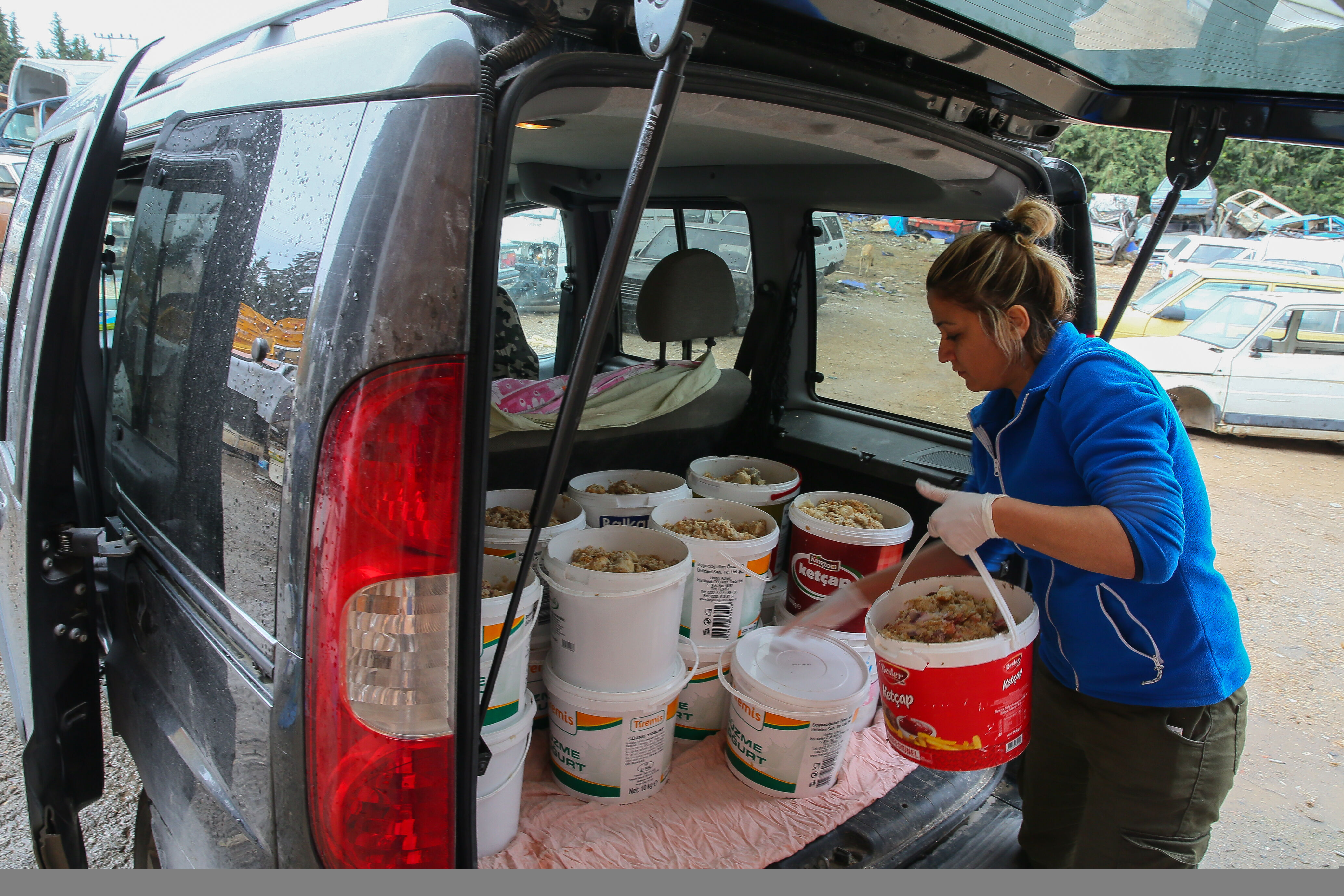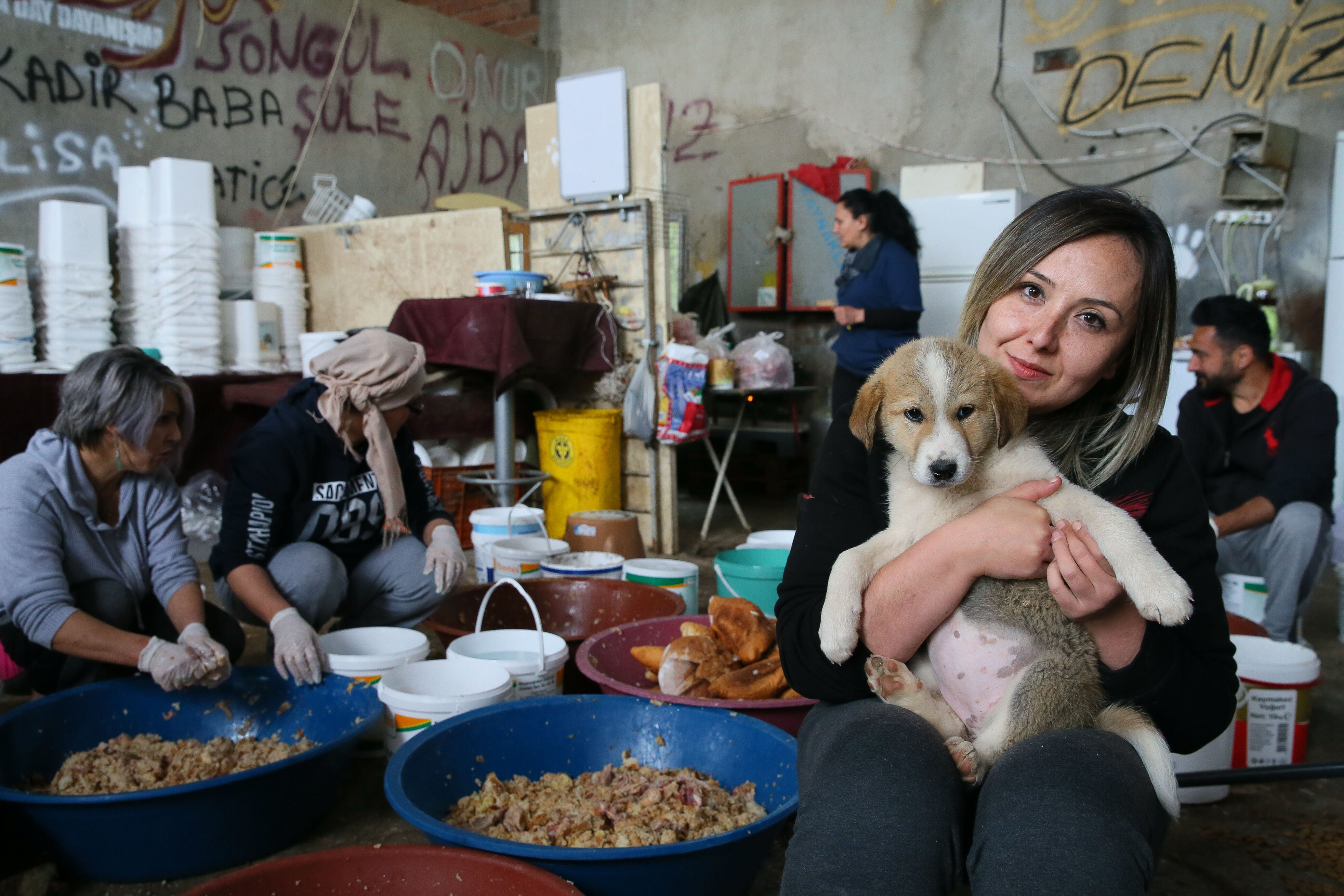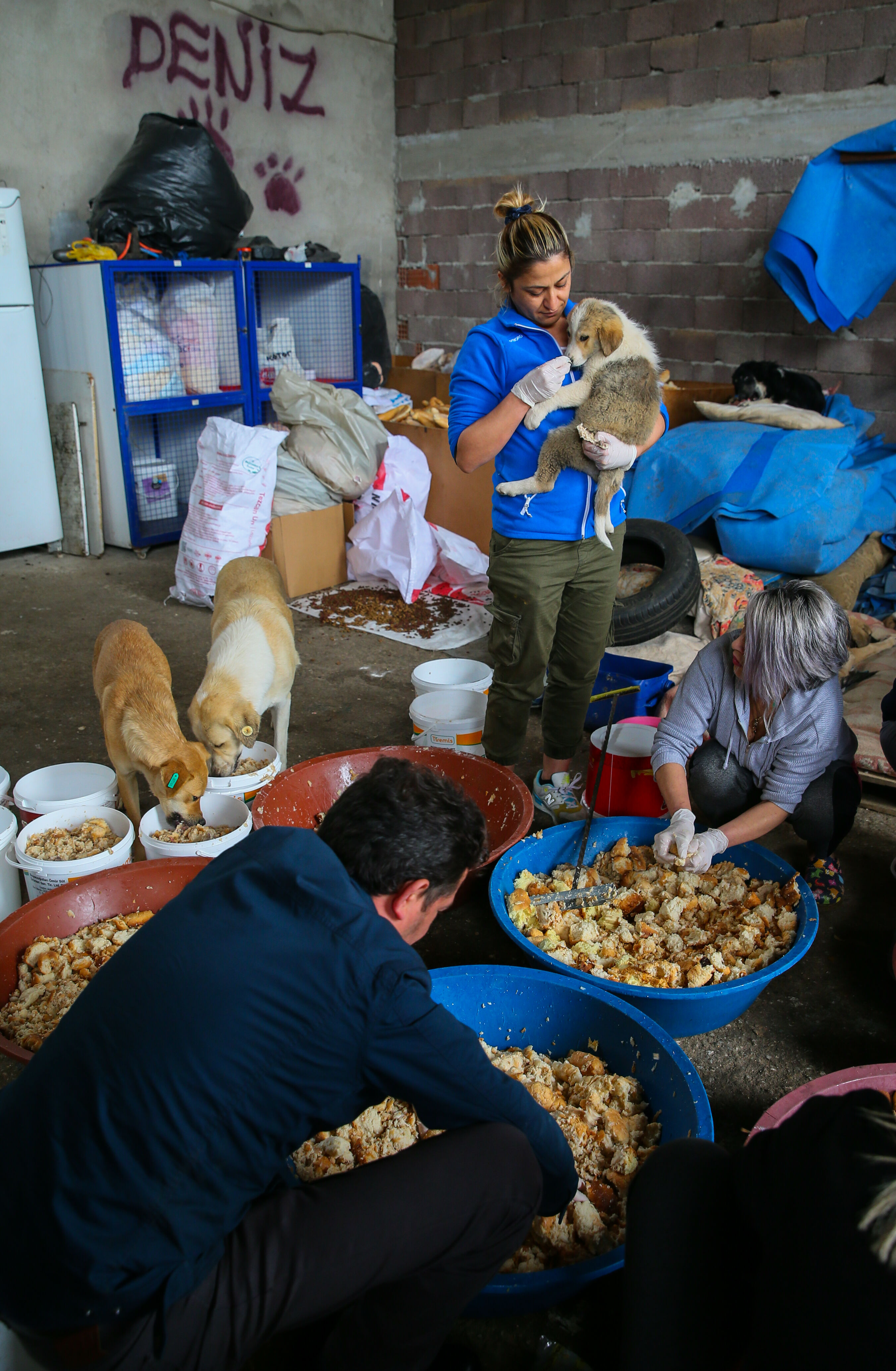 Buca Dayanışma Sahipsiz Hayvanları Yaşatma ve Koruma Derneği (Buca Day) üyeleri, İlçe Belediyesinin tahsis ettiği hurda parkında, haftanın 3 günü yemek atıkları, et suyu, ekmek, tavuk eti ile kemiklerinden "papara" ismini verdikleri mamayı hazırlıyor.