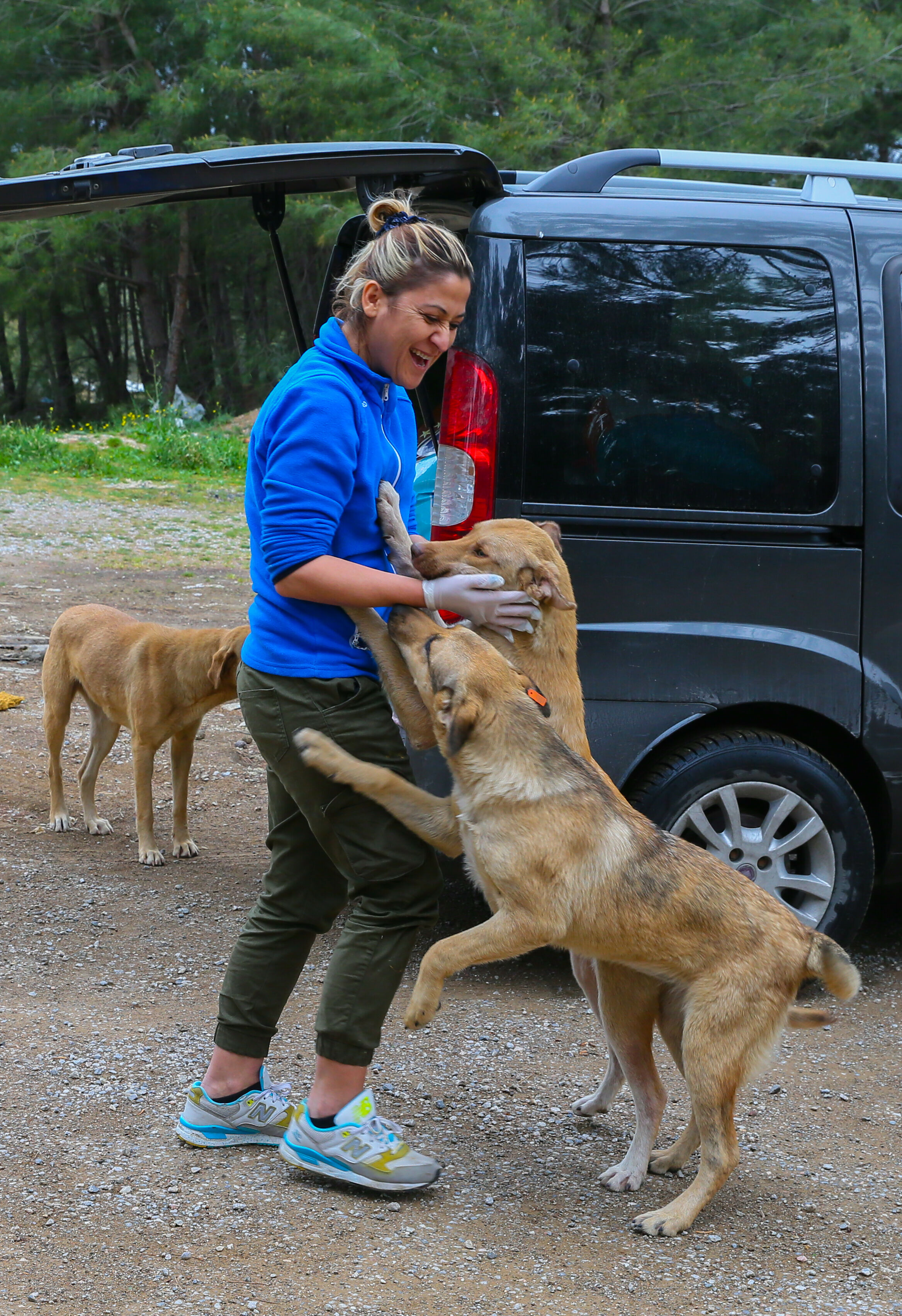Dernek üyelerinin iş çıkışı, hayvanları beslemek için bağışçılardan malzeme topladığını belirten Kapıdağ, gönüllülerin, ormana bırakılmış 600 köpeğin ihtiyaçlarını karşıladığını dile getirdi.