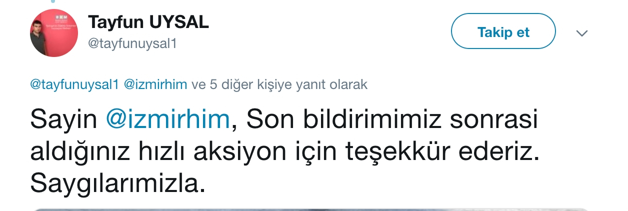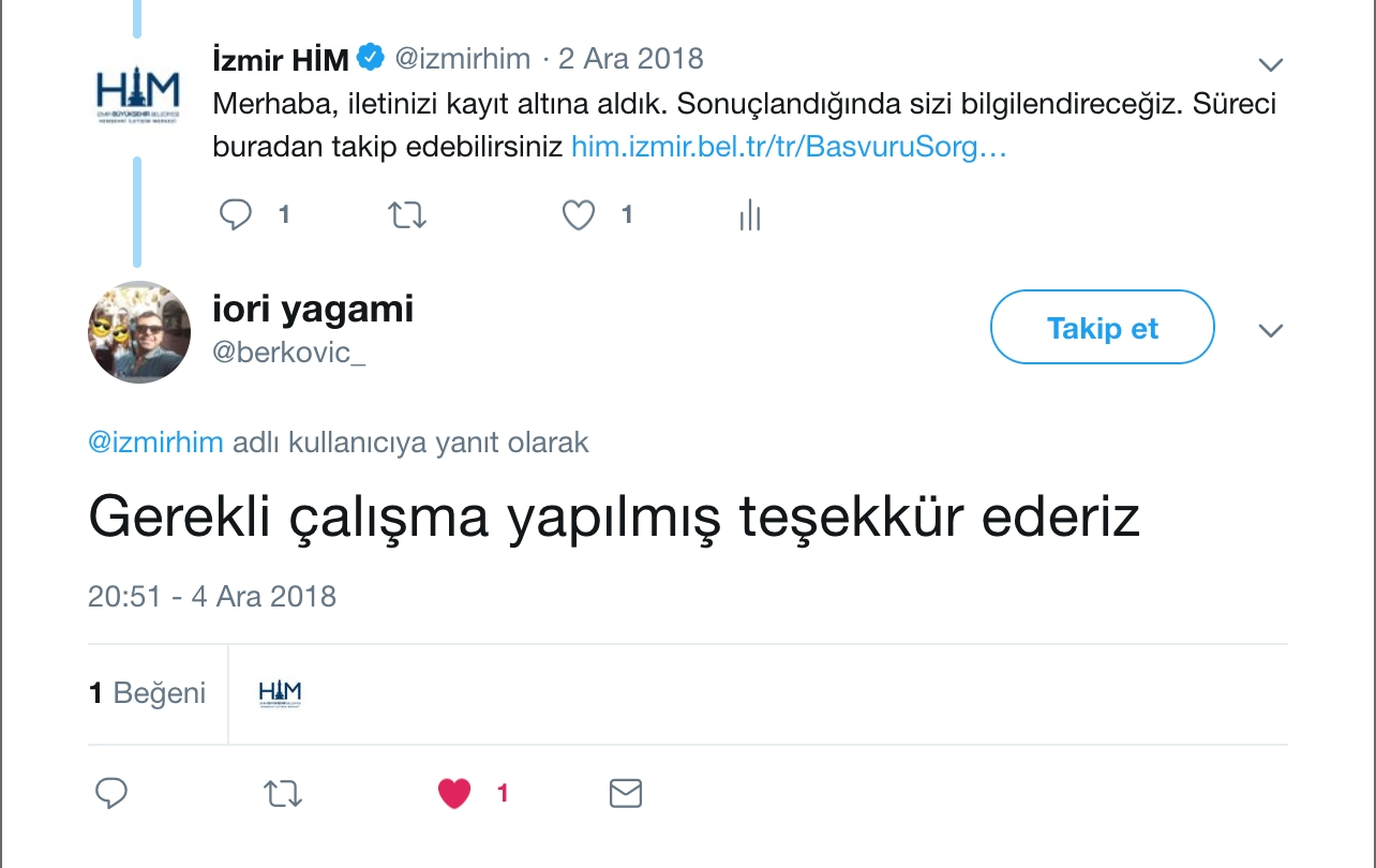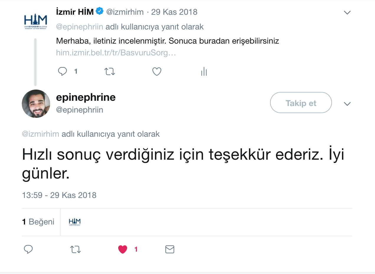 2017’den beri "izmirhim" kullanıcı adıyla Twitter sayfasında da kendini gösteren Hemşehri İletişim Merkezi, www.twitter.com/izmirhim adresiyle sürekli iletişim halinde olduğu vatandaşların İzmir Büyükşehir Belediyesi’yle ilgili her türlü görüş, öneri ve başvuruları çok daha hızlı bir şekilde kayıt altına alıp çok daha hızlı bir şekilde geri dönüyor.
