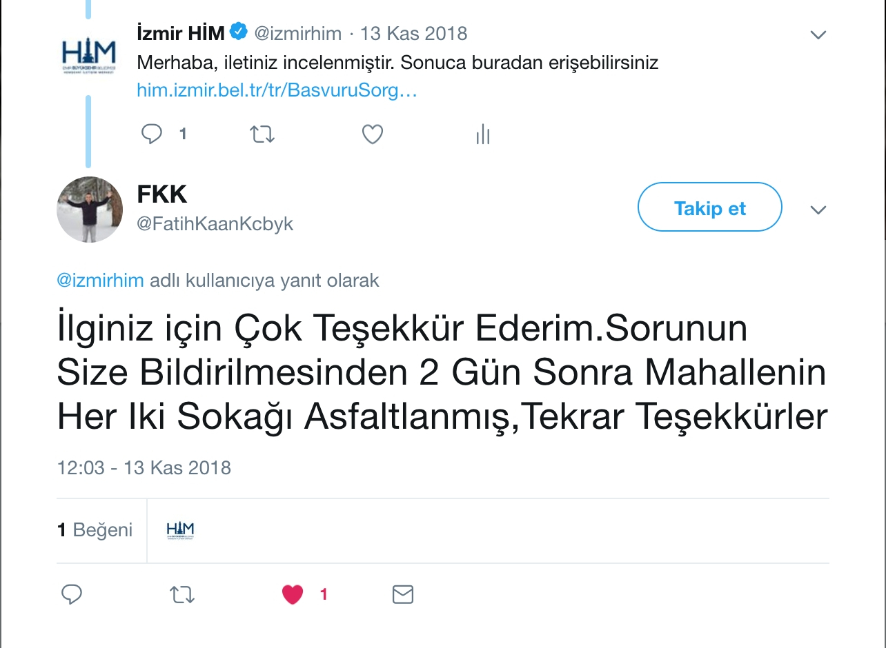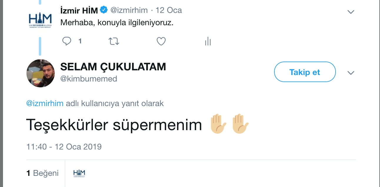 Vatandaşlardan gelecek soruların daha hızlı yanıtlanması, problem ve şikayetlerin daha çabuk çözüme kavuşturulması amacıyla hizmet veren İzmir Büyükşehir Belediyesi Hemşehri İletişim Merkezi (HİM), sosyal medya üzerinden renkli övgüler alıyor.
