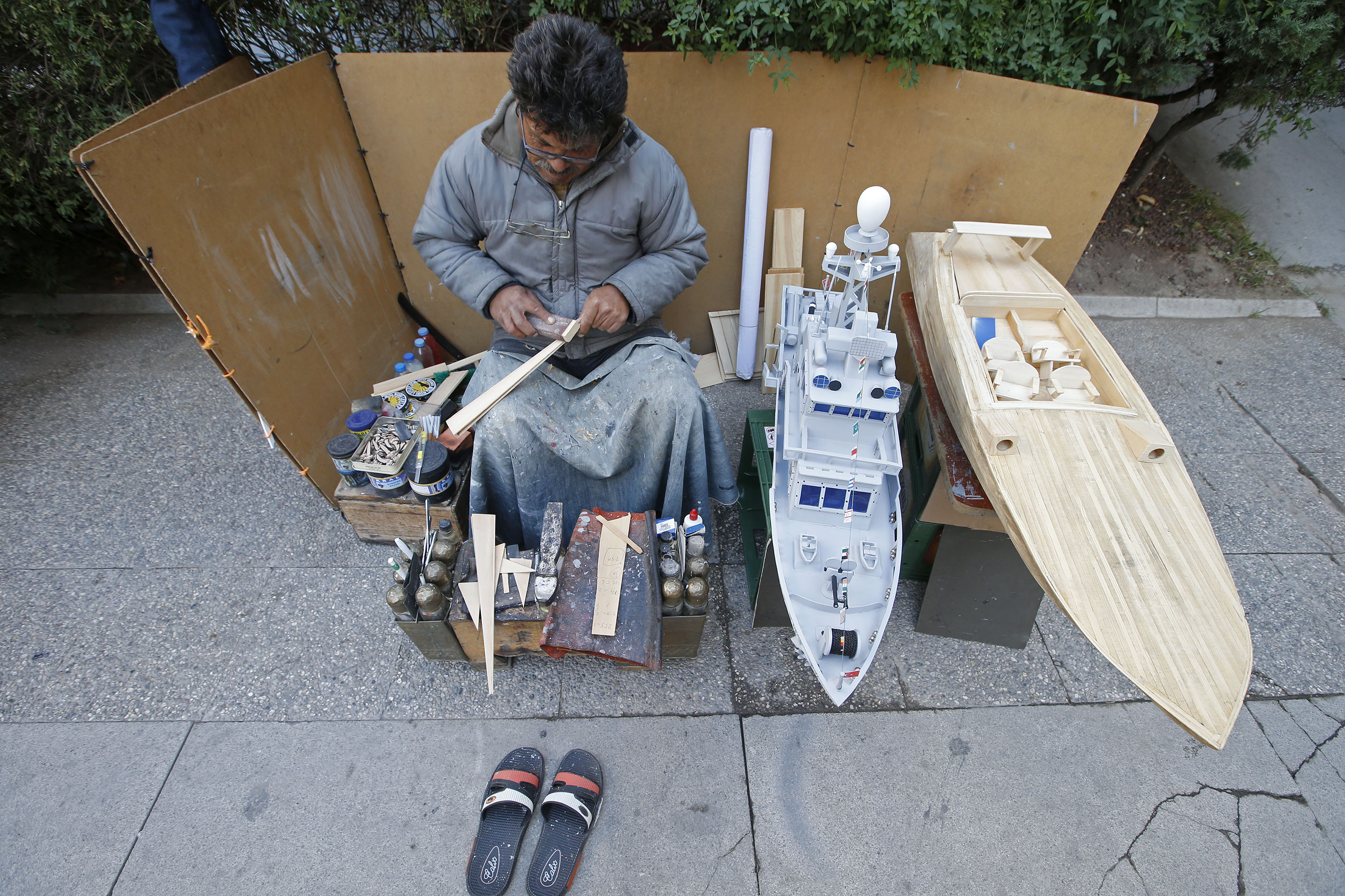 "Canım sıkılmasın diye elime aldığım bıçakla tahtaya şekil veriyordum. Yaptığım gemiler beğenilince özel sipariş almaya başladım. Ayakkabı boyayarak günde 10-20 lira kazanabiliyoruz. Üç çocuğum var. Ev kira. Maket gemileri satabilirsem kiramı çıkarıyorum, elektrik, su parasını ödüyorum."