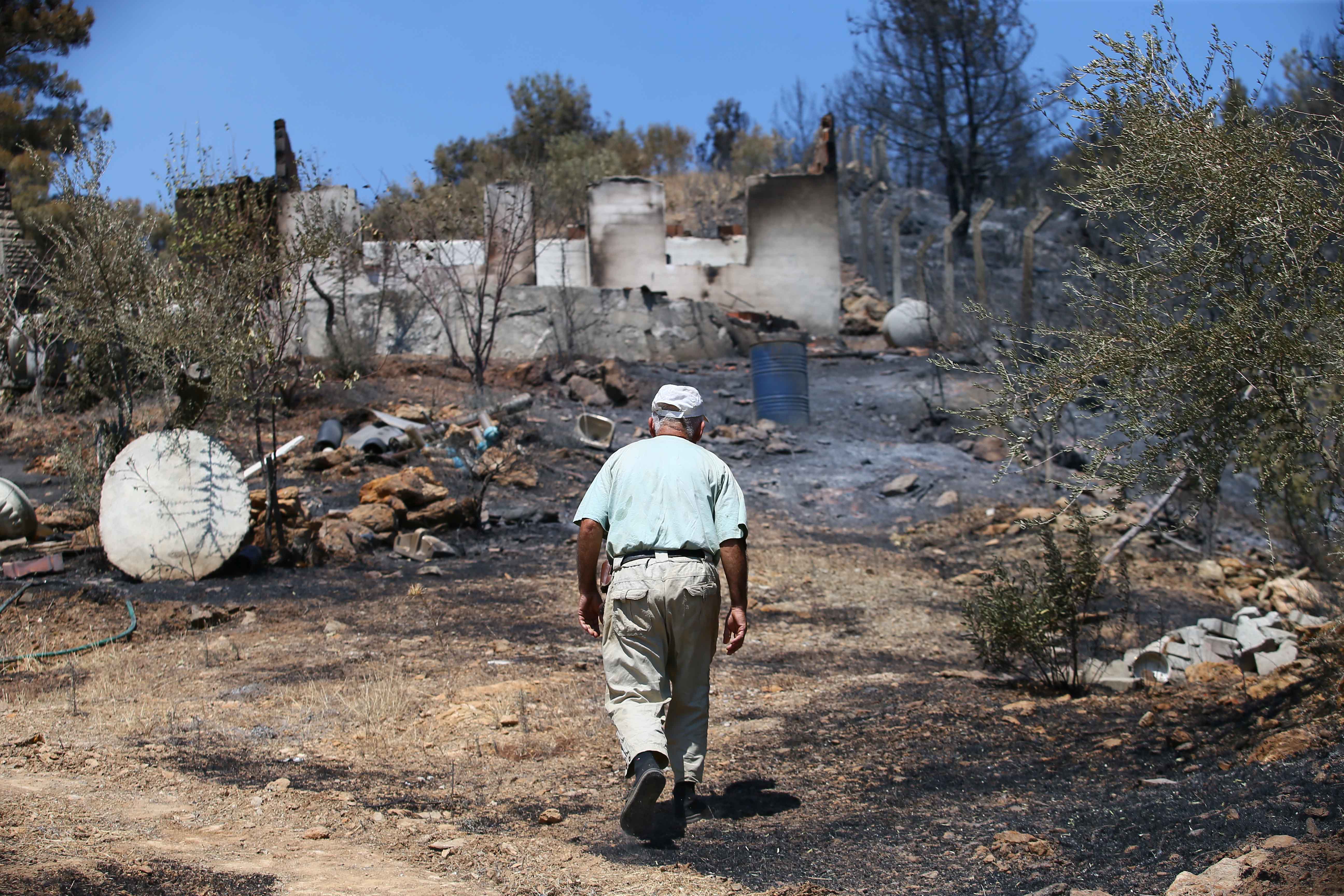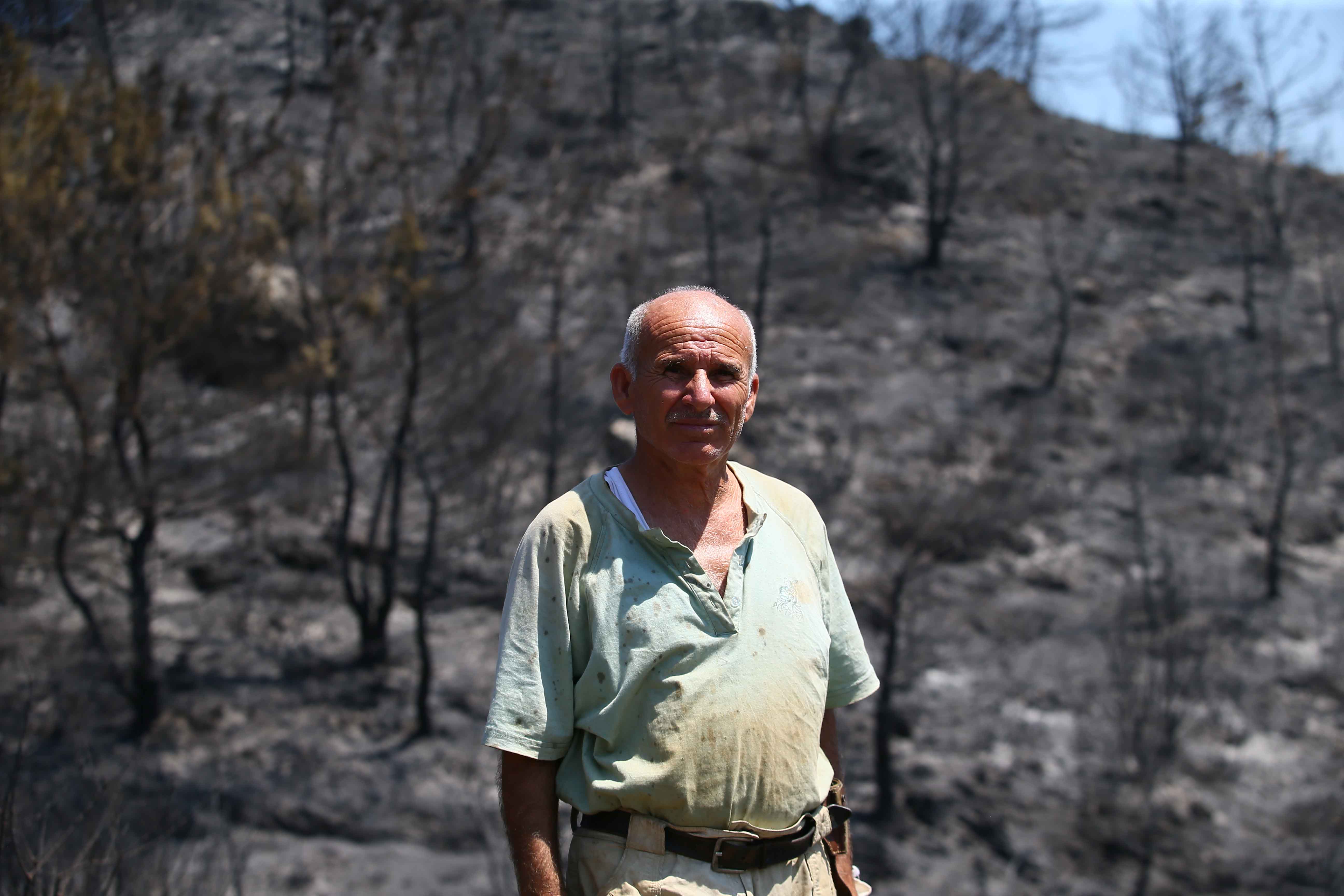 "Ceviz, zeytin, üzüm ve başka türlerde çok sayıda meyve ağaçlarını kendi ellerimizle buraya diktik. Yangın çıktı ve 20 yıllık emeğim 20 dakikada gitti. Jandarma anons yaptıktan sonra biz her şeyi bırakıp çıktık. Uzaklardan ancak seyredebildim yangını. Gözlerimin önünde her şeyimiz yandı. Yapabilecek bir şeyimiz yoktu. Üç gündür yangın sönmüyor. İçimiz, ciğerimiz yandı. Evde dursaydık biz de yanardık. Kaçtık gittik, hiçbir şey çıkaramadık. Buna da şükür ne diyelim, can kaybımız yok. İnşallah bir an önce yangın söner. Mağduruz, umarım yetkililer bize destek olur. Ömür gitti, ben artık burada yeşilliği göremem. Allah kimseye böyle bir acı göstermesin. 20 yıllık emeğimiz kül oldu."