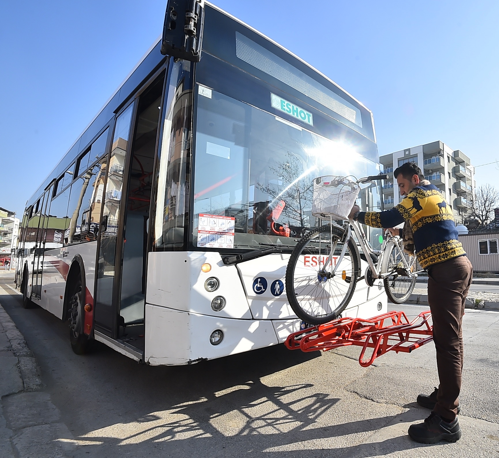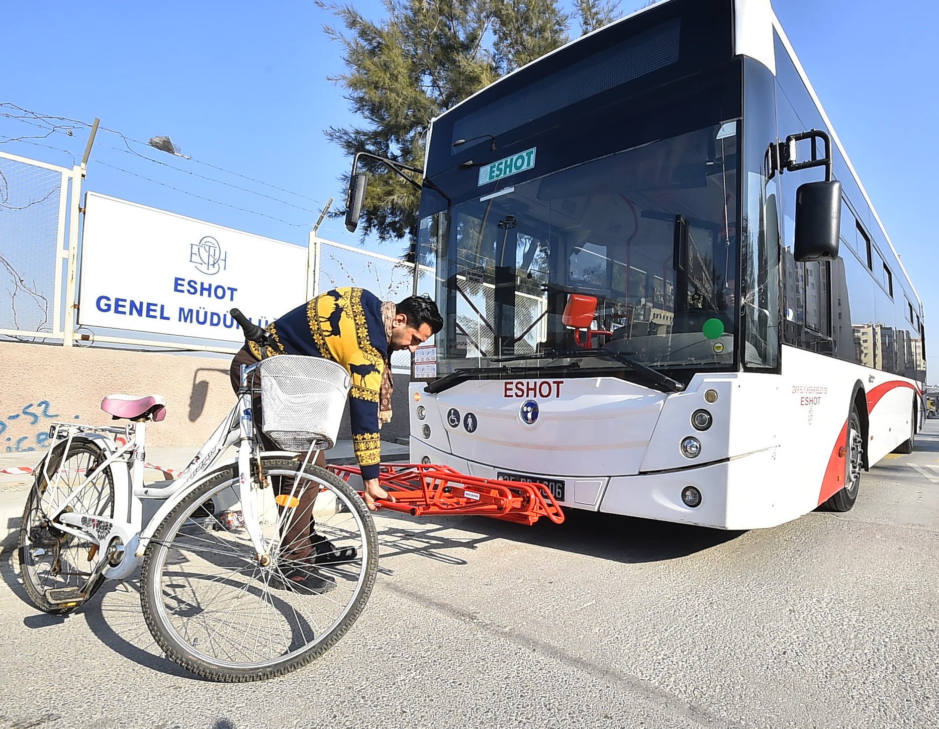İzmir Büyükşehir Belediyesi, metro ve İZBAN trenlerinde bisikletli yolculuğun önünü açan düzenlemelerin ardından, bisiklet kullanımını yaygınlaştırmak için ilk etapta 60 otobüse özel “bisiklet aparatı” taktı. 2 bisiklet taşıma kapasiteli aparatlar, kolay kullanımıyla hizmet vermeye başladı.