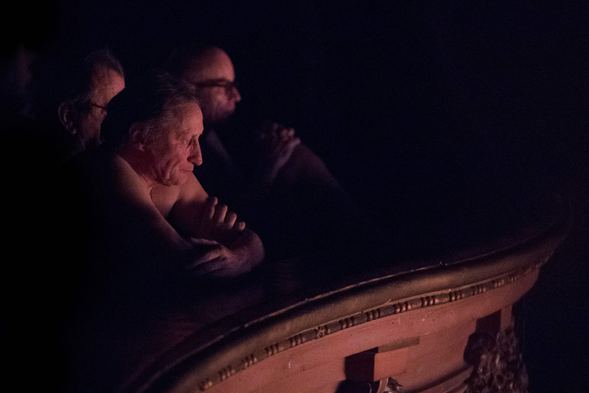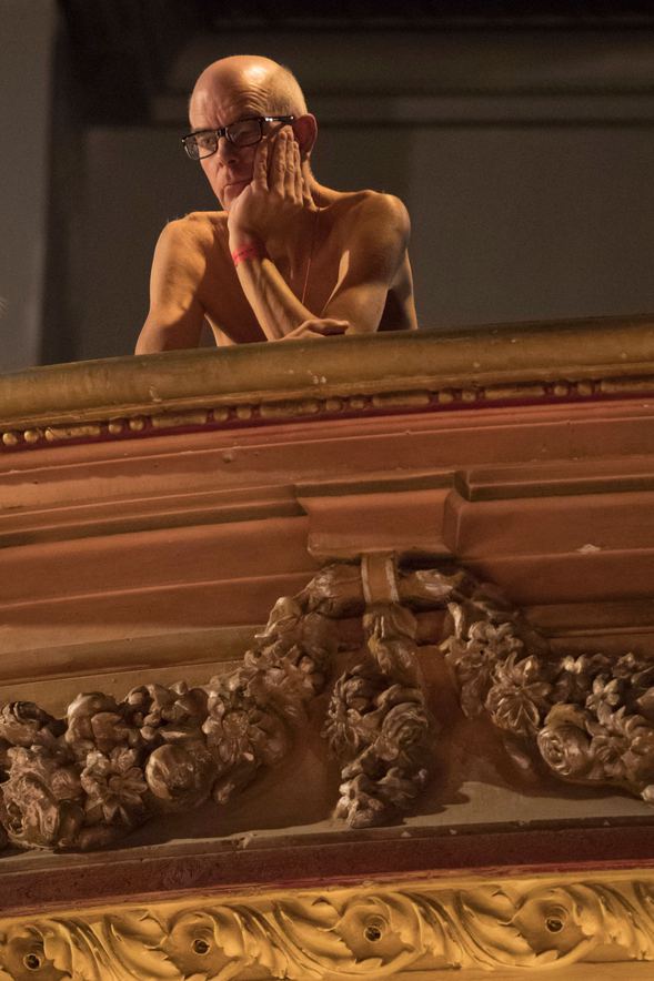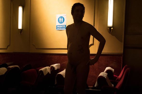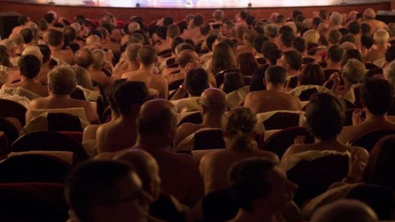 Oyuncuların çıplak olduğu oyunu izlemek isteyenler salona çıplak alındı.