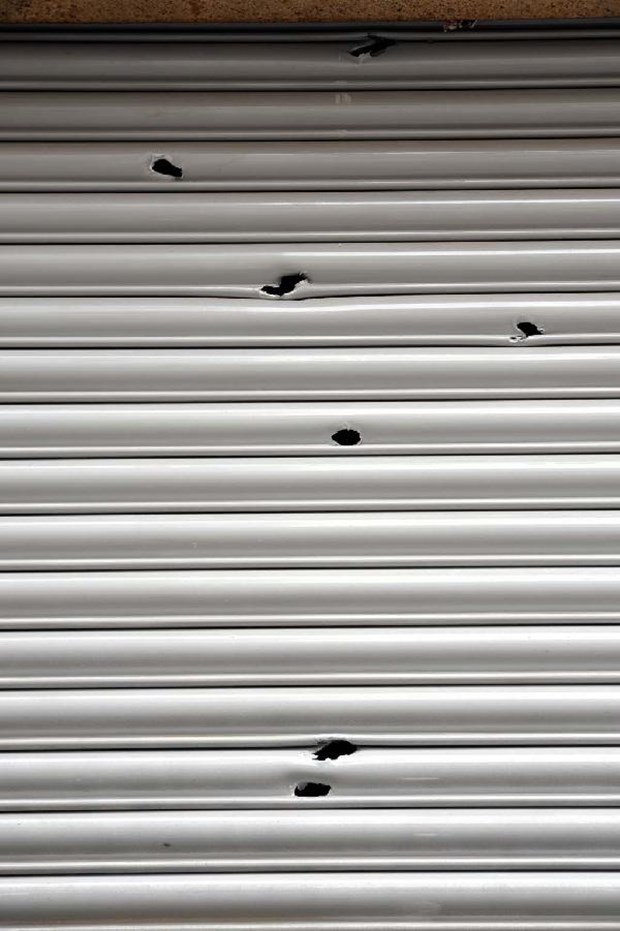 Patlamayla işyerlerinin kepenklerinde delikler açıldığı görüldü.