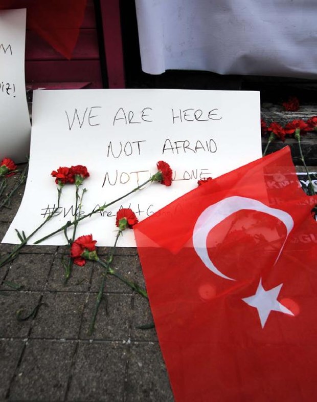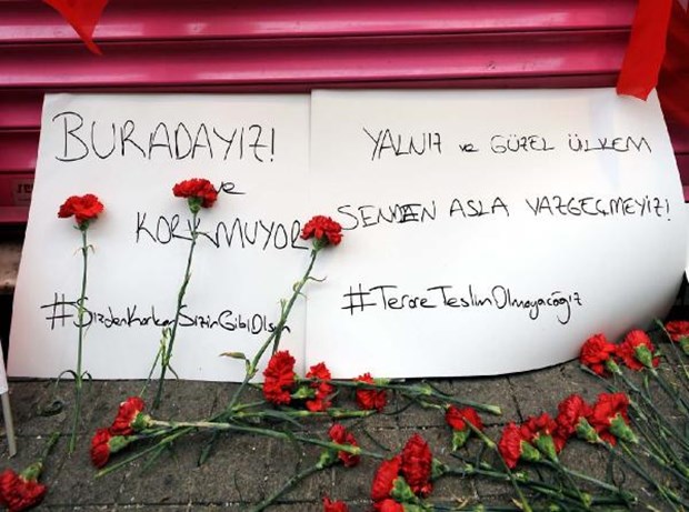 Patlama alanına karanfiller ve "Korkmuyoruz" yazılı kartonlar bırakıldı.
