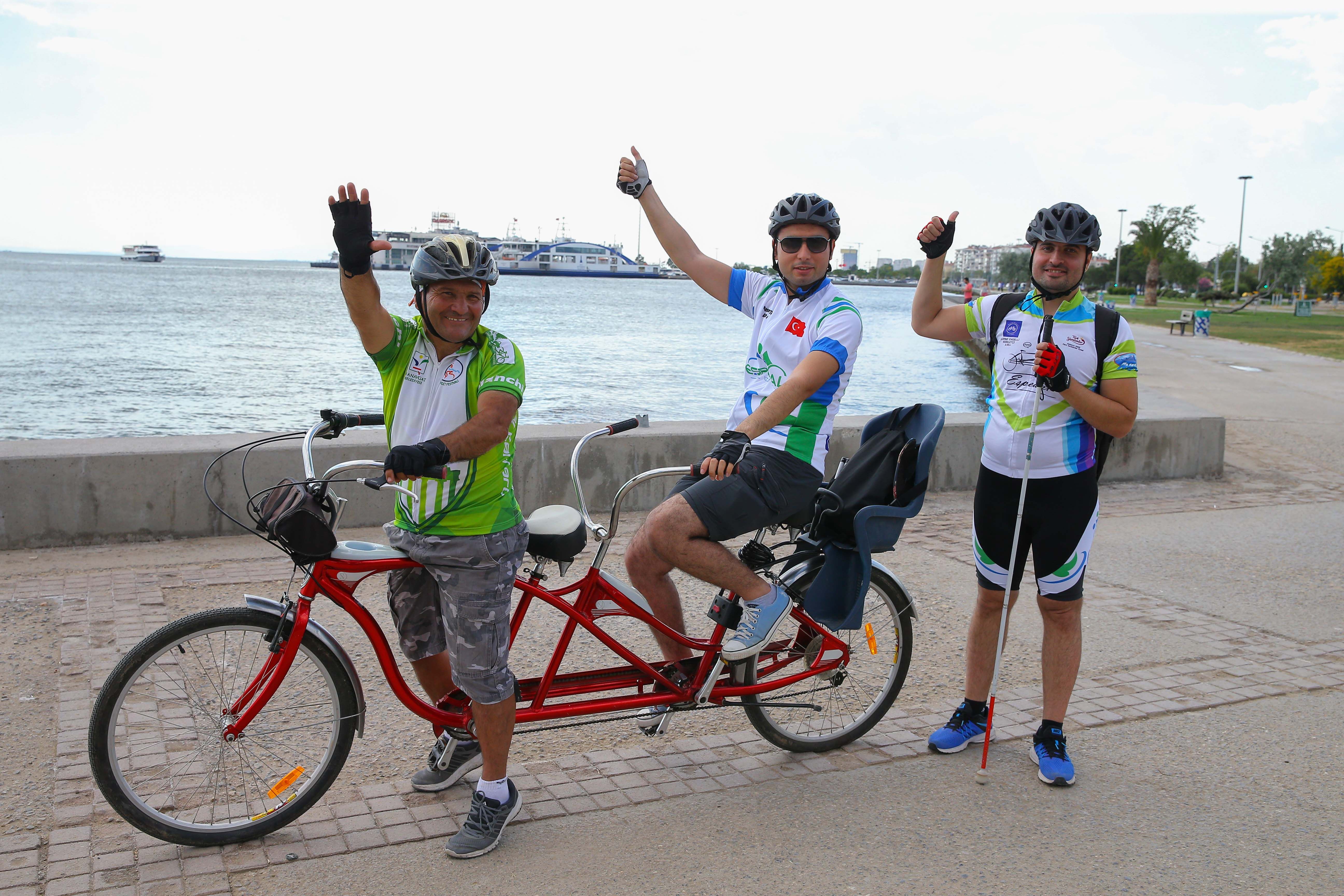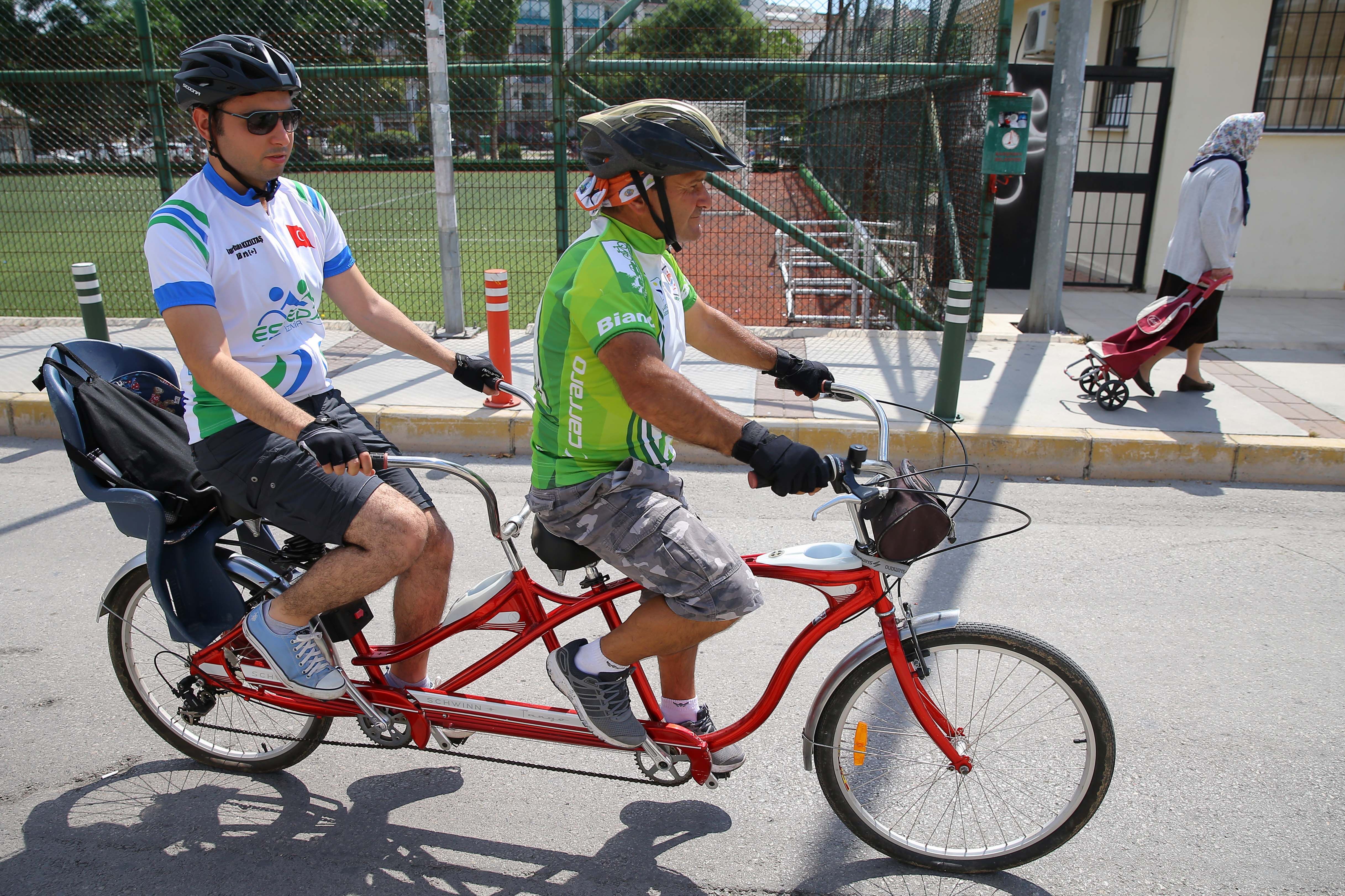 Görme engellilerin sosyal hayata katılımını artırmayı amaçlayan gönüllüler, engelleri nedeniyle daha önce hiç bisiklete binmemiş ya da sonradan yaşadığı görme kaybı nedeniyle çok sevdiği bisikletten uzak kalmış engellilere iki kişilik bisikletlerle (tandem) sürüş heyecanı yaşatıyor.