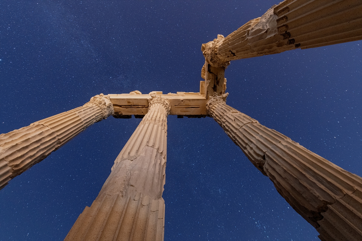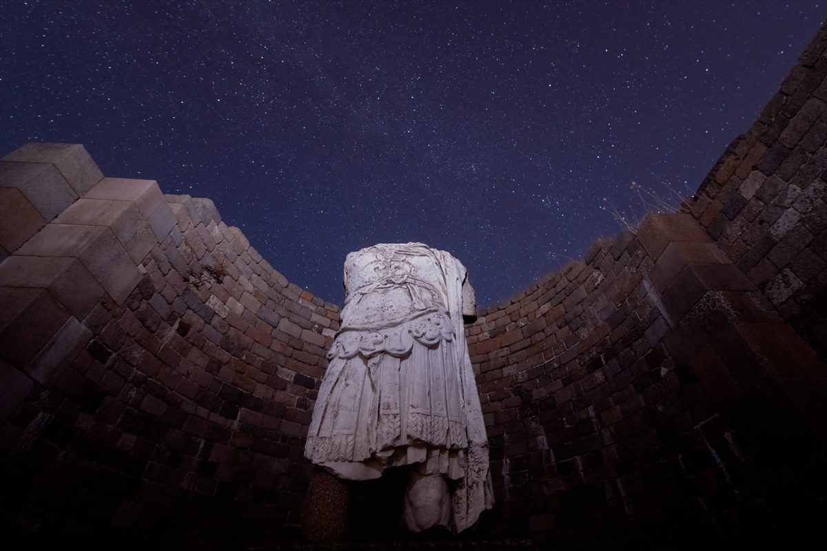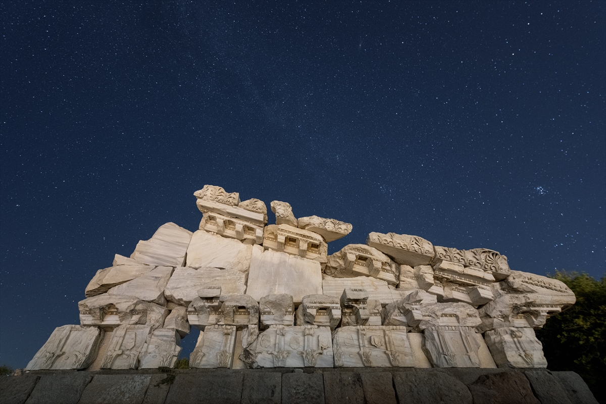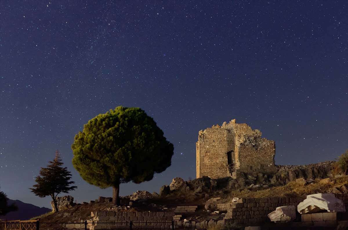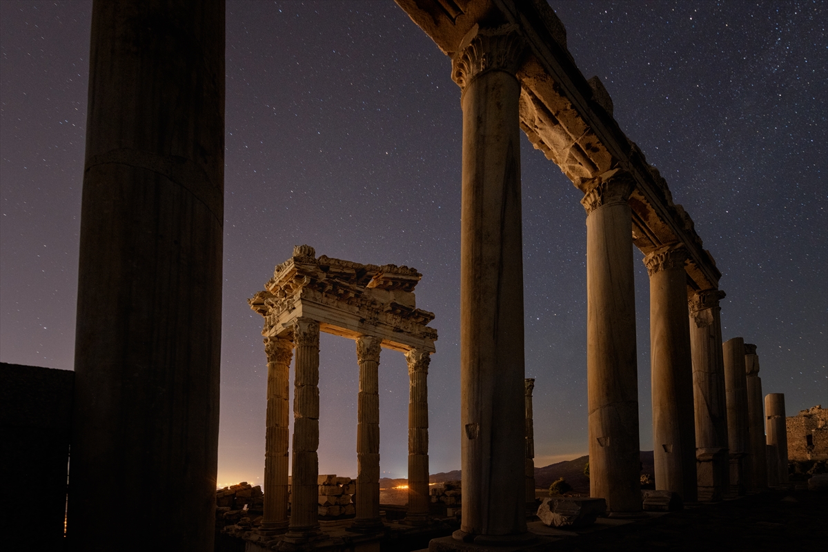 İzmir’in Bergama ilçesinde yer alan ve UNESCO Dünya Mirası Listesi’nde bulunan Pergamon Antik Kenti'ndeki yapılar ve yıldızlar, uzun pozlama tekniğiyle görüntülendi. Tarihi yapılar, yıldızlarla birlikte güzel görüntü oluşturdu.
