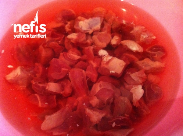 Etleri derin bir kapta biraz soğuk suda bekletelim ki kanları çıksın.