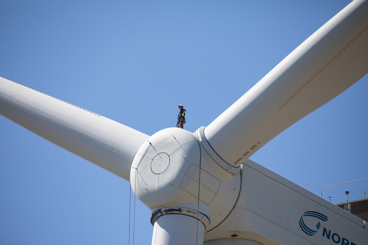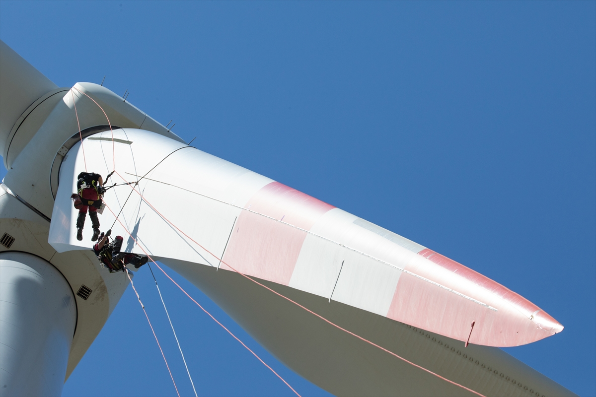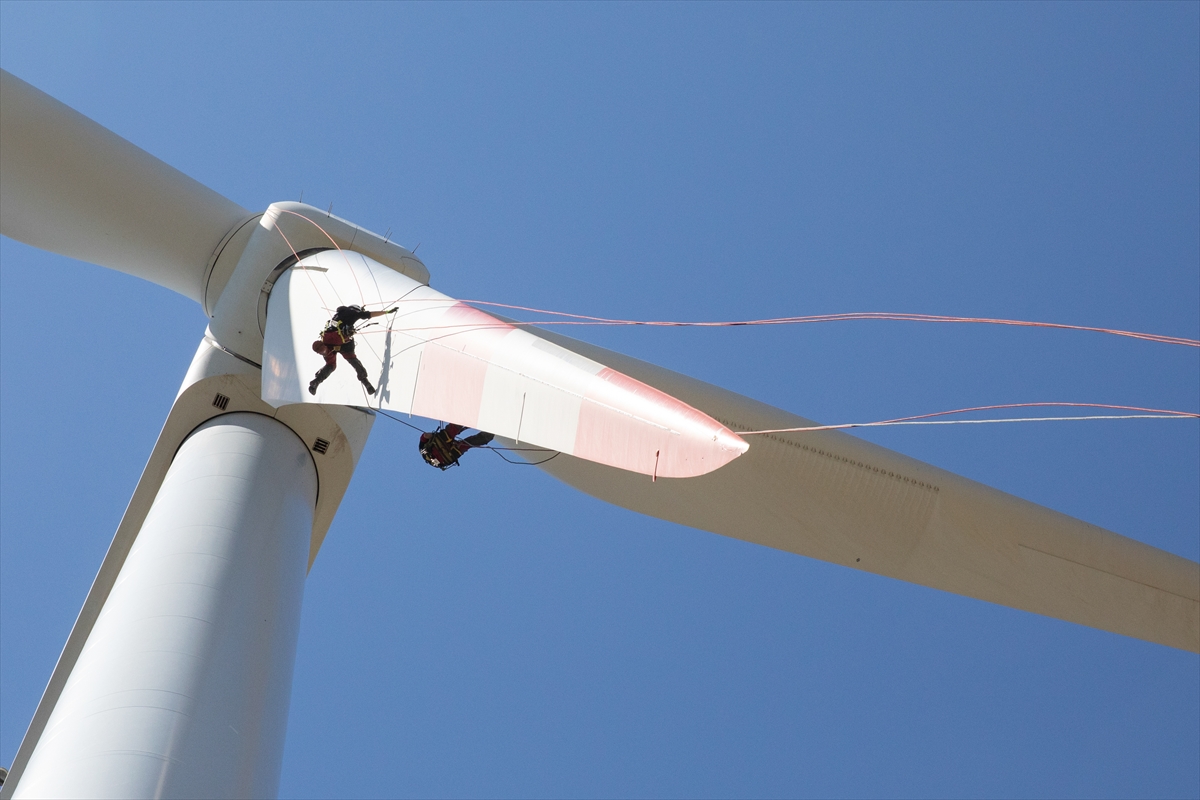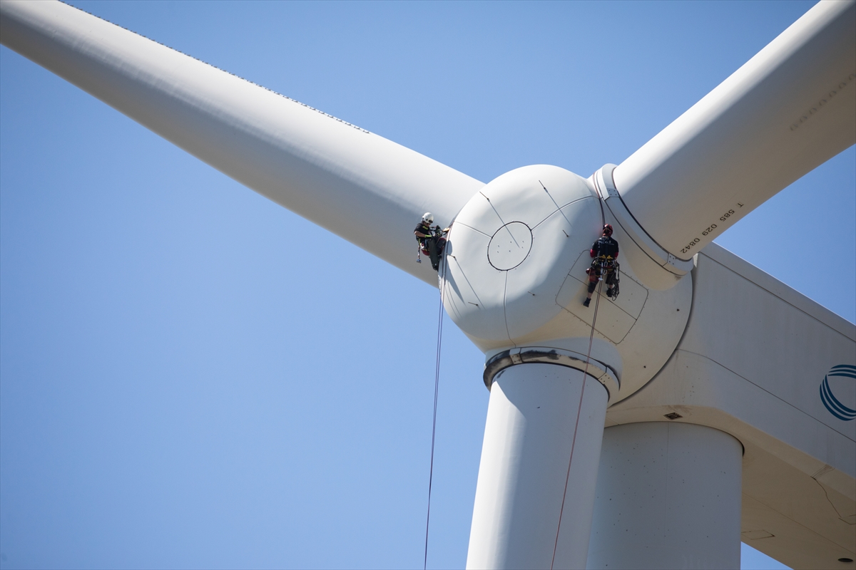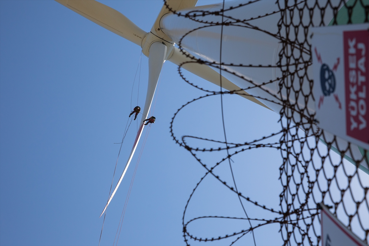 "Türbin içindeki asansör yardımıyla yukarıya çıkıyoruz. Asansör arızalı ise türbindeki merdivenden tırmanıyoruz. Vinç yardımı ile ekipmanları türbinin kule üstündeki kısımlarından biri olan nacelleye (makine bölümü) çıkartıyoruz. Kanat uygun pozisyona geldiğinde türbin içindeki kilit sistemini kullanarak türbini istediğimiz pozisyonda sabitliyoruz. Sonra ipleri nacelle içindeki istasyon noktasına sabitleyerek kanattan aşağı atıyoruz. Naccellenin üstünden iniş noktasına ulaşmak için güvenlik amacıyla yerdeki noktalara bağlanarak yürüyoruz. İplere vardığımızda aşağı inmek için hazırlığımızı tamamlıyoruz ve işe koyuluyoruz."