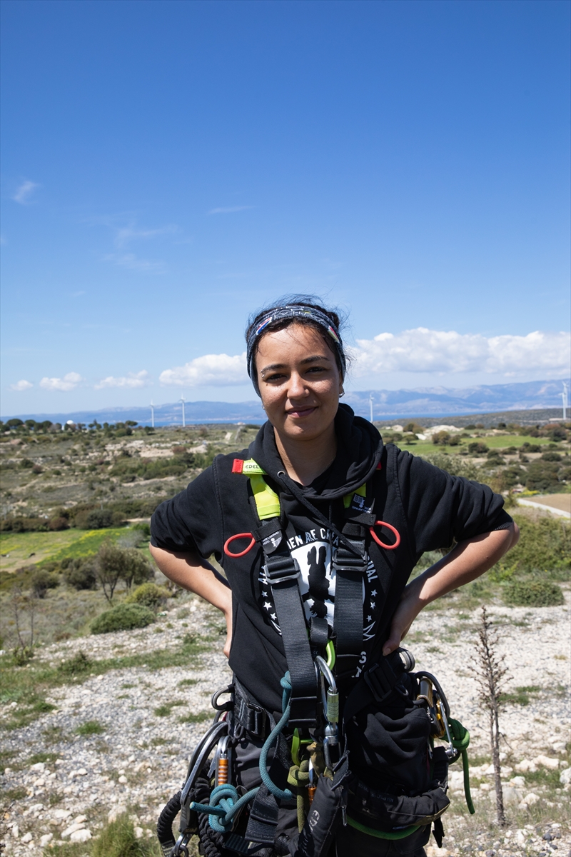 "Çocukluğumdan beri yükseklik korkum var ama bir kemere, ipe bağlandığımda kendimi güvende hissediyorum. 200 metre yükseklikte bile çalışabiliyorum ama bazen babamla yürüyüşe gidiyoruz, uçurum kenarında fotoğraf çektirmek istiyoruz, ben korkuyorum, aşağı bile bakamıyorum. Sadece kemere bağlandığımda kendimi güvende hissediyorum. Yükseklik korkum o anda kayboluyor birden. Ekipmanlarımızın standardı olduğu için ekipmanlara güveniyoruz. Tedbiri alırsanız risk sıfır ama bir hata yaparsanız hayatınıza mal olabilir."