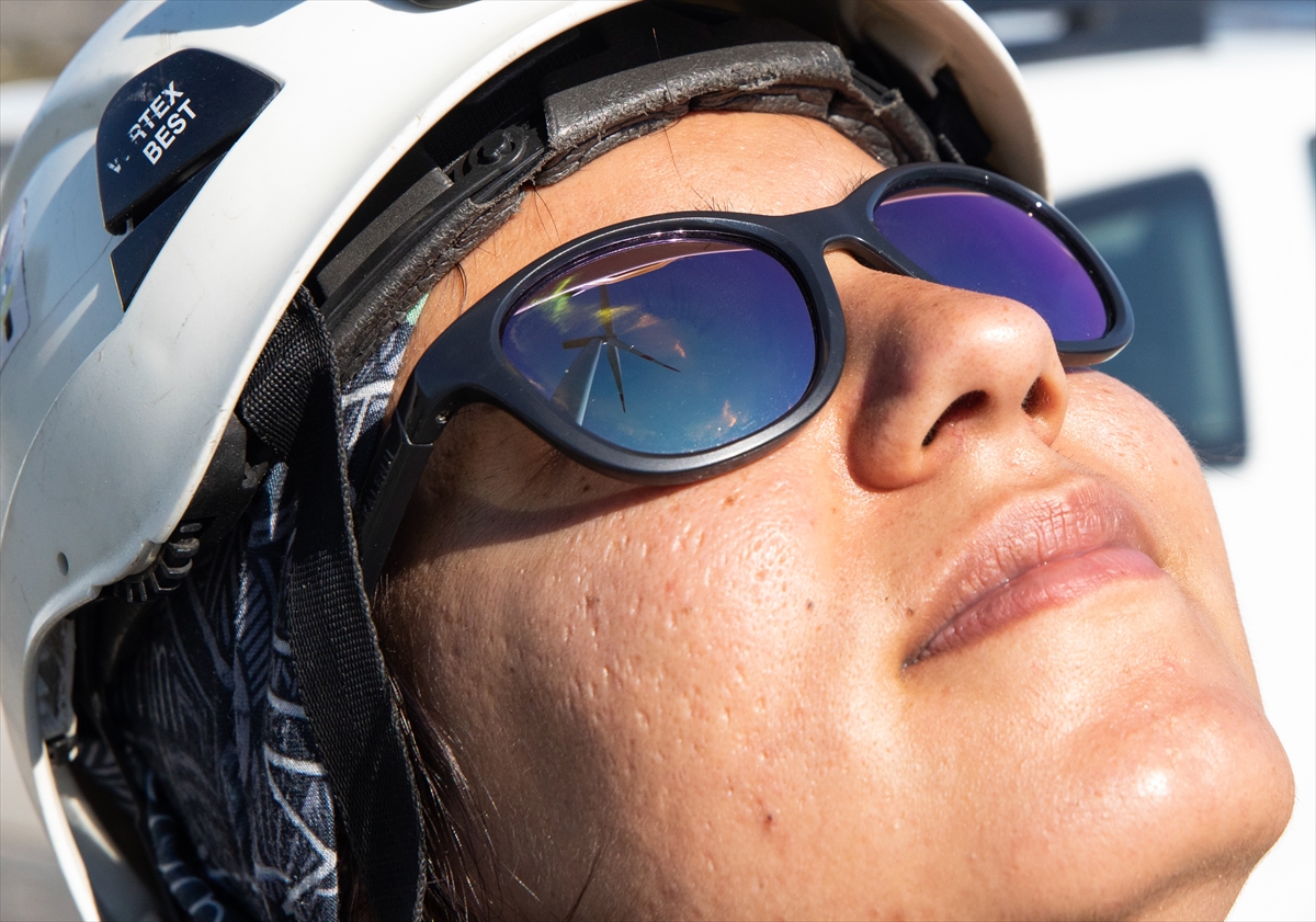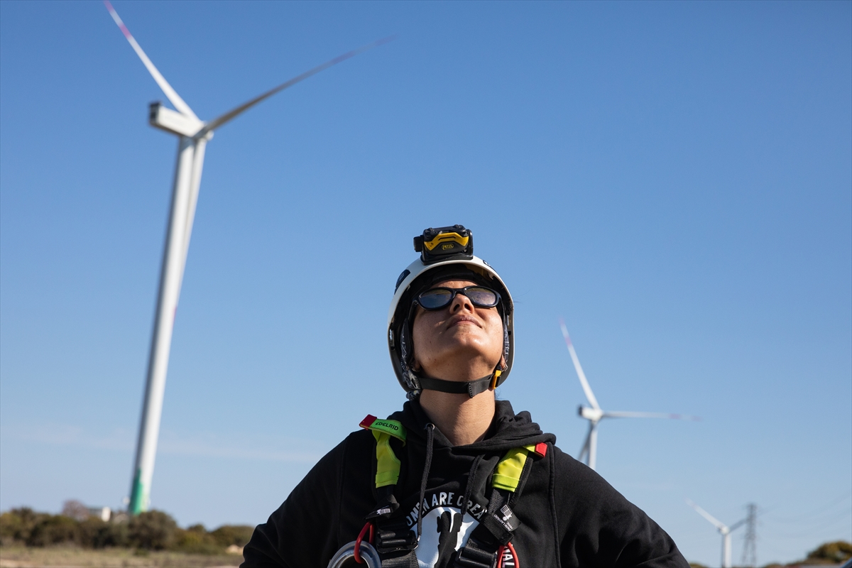 Hazel Kaya, işi gereği bazen yüksekliği 100 metreyi bulan bir rüzgar türbininin iç ve dış kısımlarında, motor bölümü ya da kanadında bakım, güçlendirme, tamir, temizlik ve yüzey koruma işleri yapıyor.
