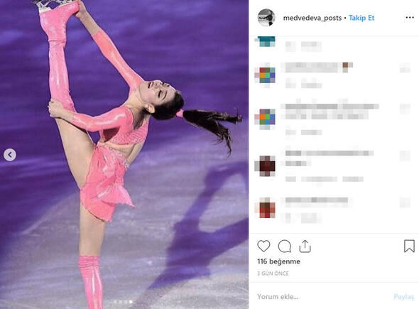 Bir başka kullanıcı ise Olimpiyat şampiyonu Alina Zagitova'nın, Evgenia Medvedeva'yı takipten çıkarmasına atıfta bulundu ve "Zagitova'nın seni takipten çıkardığını fark edince 18+ parti yapmaya başlamışsın" yazdı.