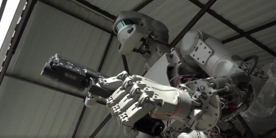 Robot, Android Technics ve Advanced Rsearch Fund firmaları tarafından geliştirilen FEDOR geçtiğimiz dönemde yayınlanan videolarında iki tabancayı etkileyici bir doğruluk payıyla kullanabiliyordu.