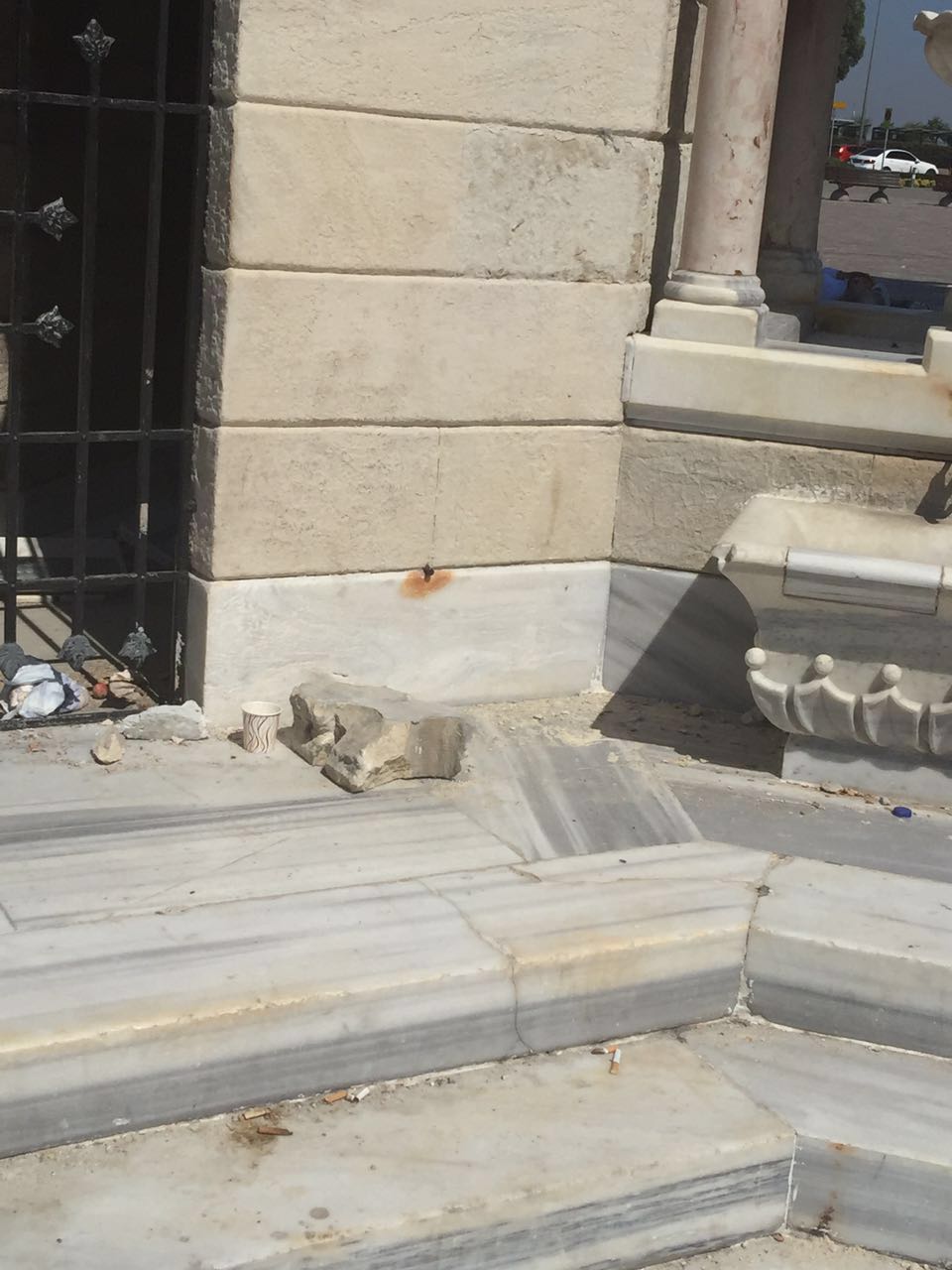 Darbe girişimi sonrası vatandaşların akın ettiği Konak Meydanı’nda üzücü bir olay yaşandı. Saat Kulesi’nin saati çalınırken tarihi çeşmeler de söküldü. Bina büyük hasar gördü.