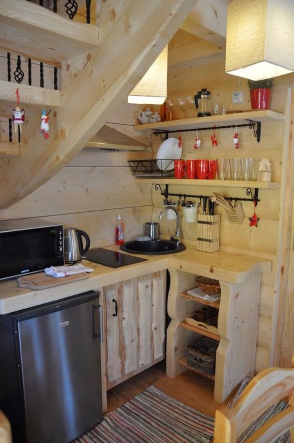 Ağaç ev sadece 27 metrekare ancak içi öyle kullanışlı tasarlanmış ki büyük bir evde bulunabilecek her şey mevcut.