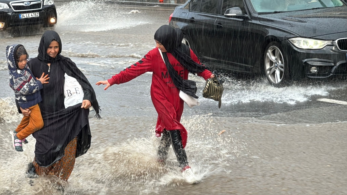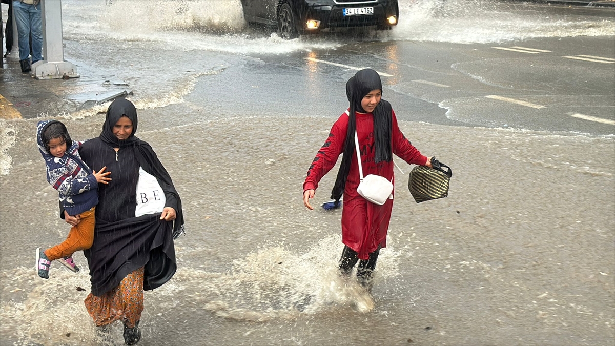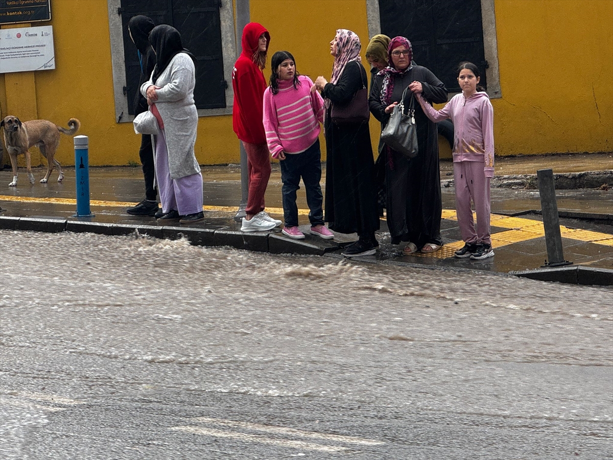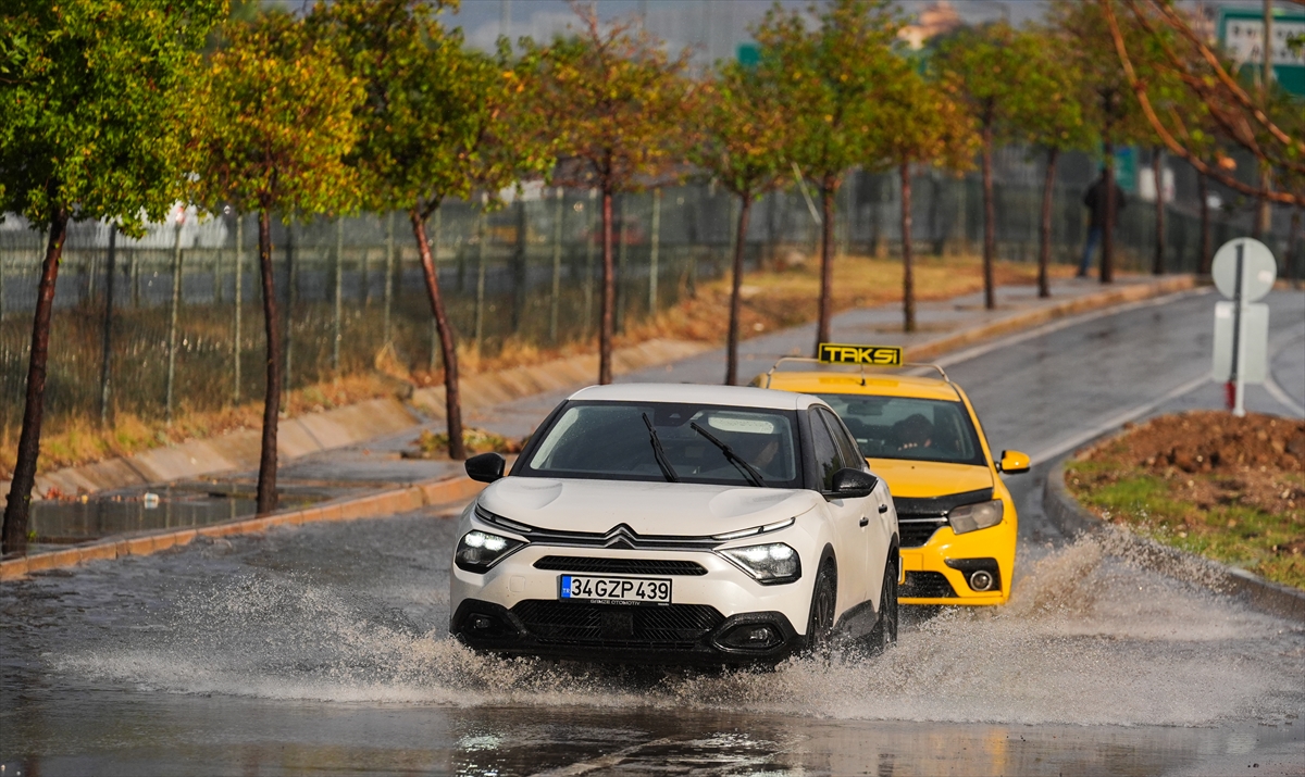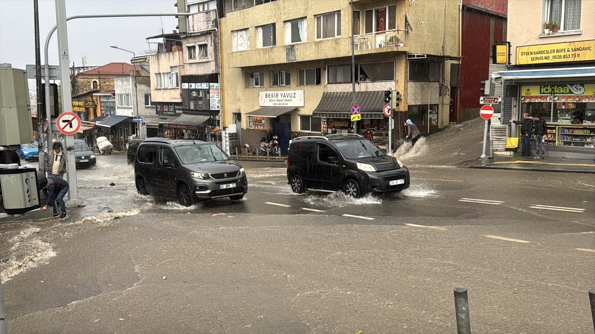 Su birikintisi nedeniyle bazı yollarda trafik durma noktasına gelirken Yeşildere yolunda bir otomobilin su birikintisi içinde kaldığı görüldü.