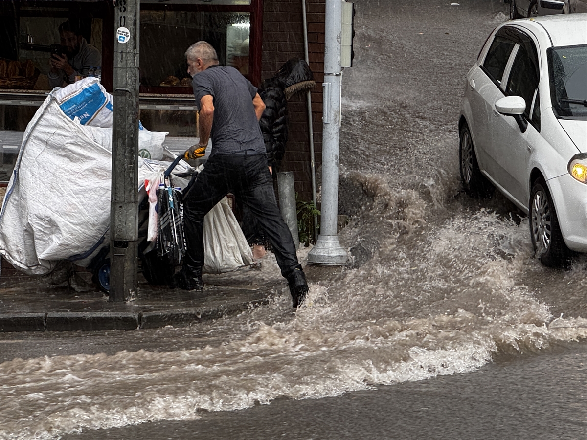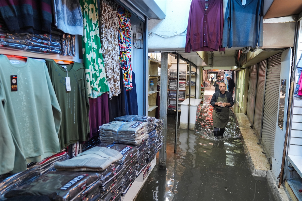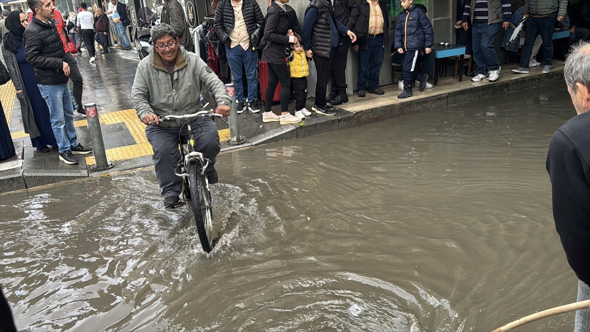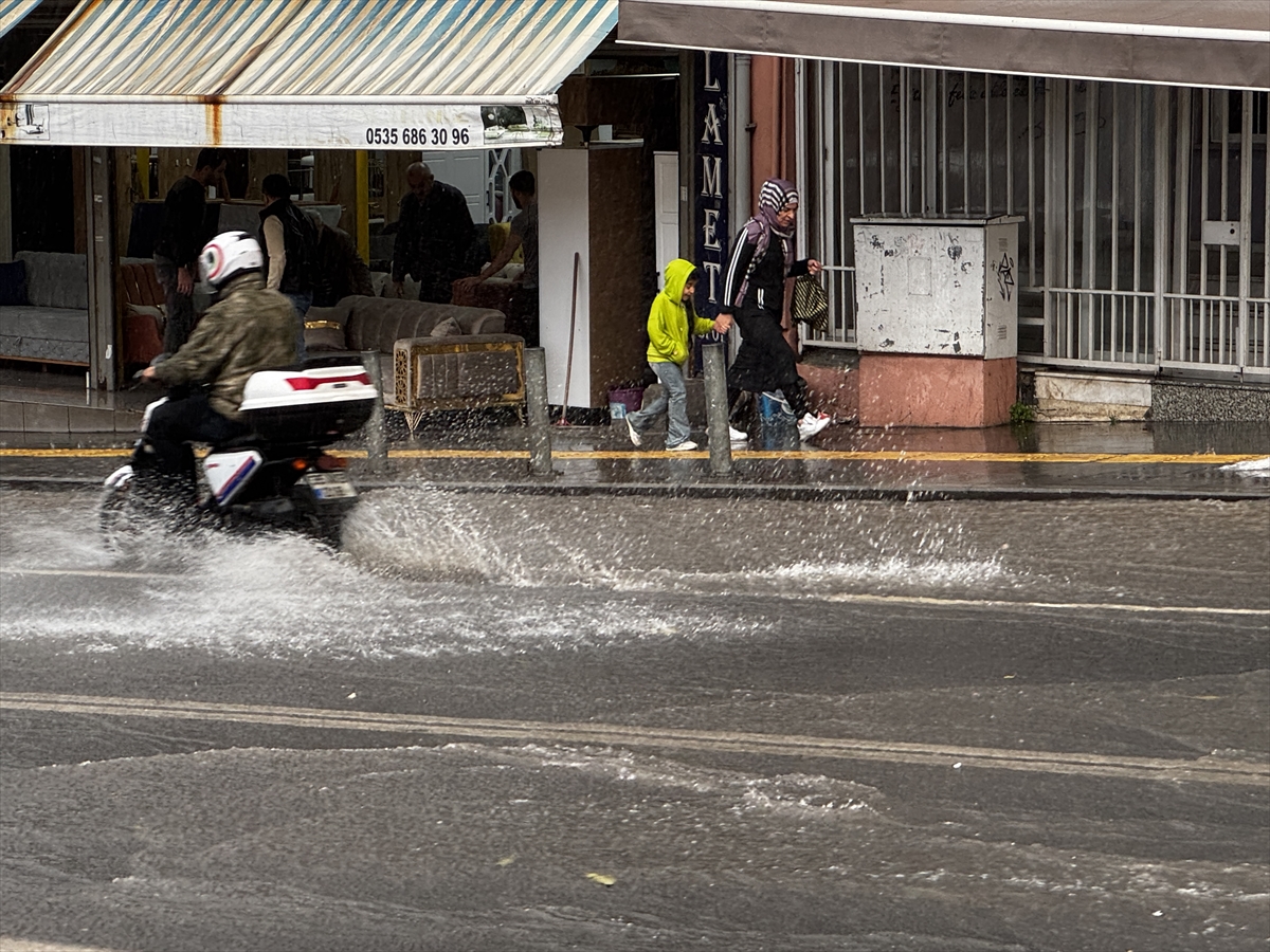 Üçyol yönünden akan su, bazı iş yerlerini bastı. Esnafın su baskınına karşı önlem almaya çalıştığı görülürken sağanağa sokakta yakalanan vatandaşlar zor anlar yaşadı.