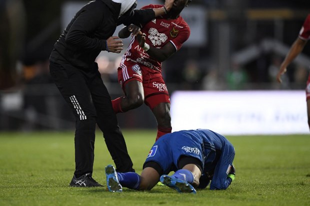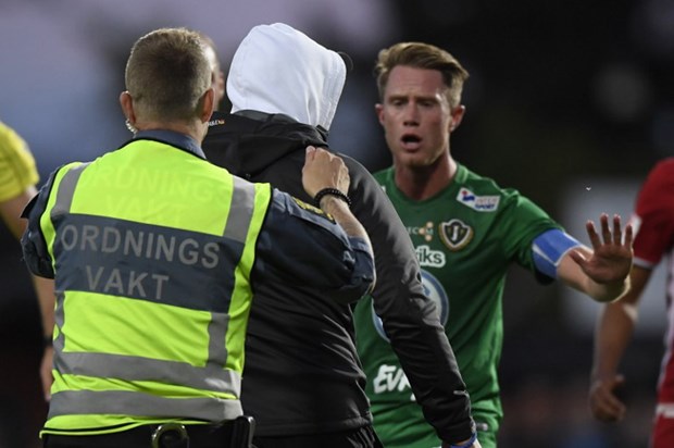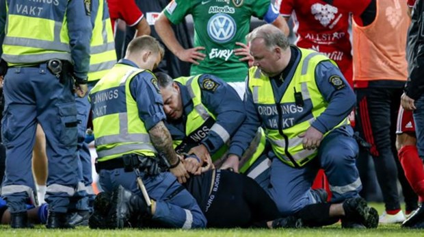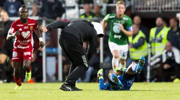 İsveç Birinci Futbol Ligi'nde oynanan lig maçında, sahaya giren bir taraftar, Östersunds kalecisi Aly Keita'ya saldırınca maç tatil edildi.