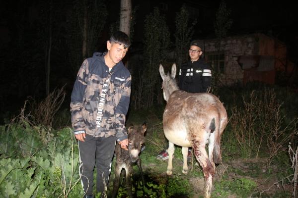 Erzurum'un Oltu ilçesi Karabekir Mahallesi'nde sokakta oynayan çocuklar, sahipsiz eşeğin doğum yaptığı sırada yanından ayrılmadı, yardımcı olmaya çalıştı.