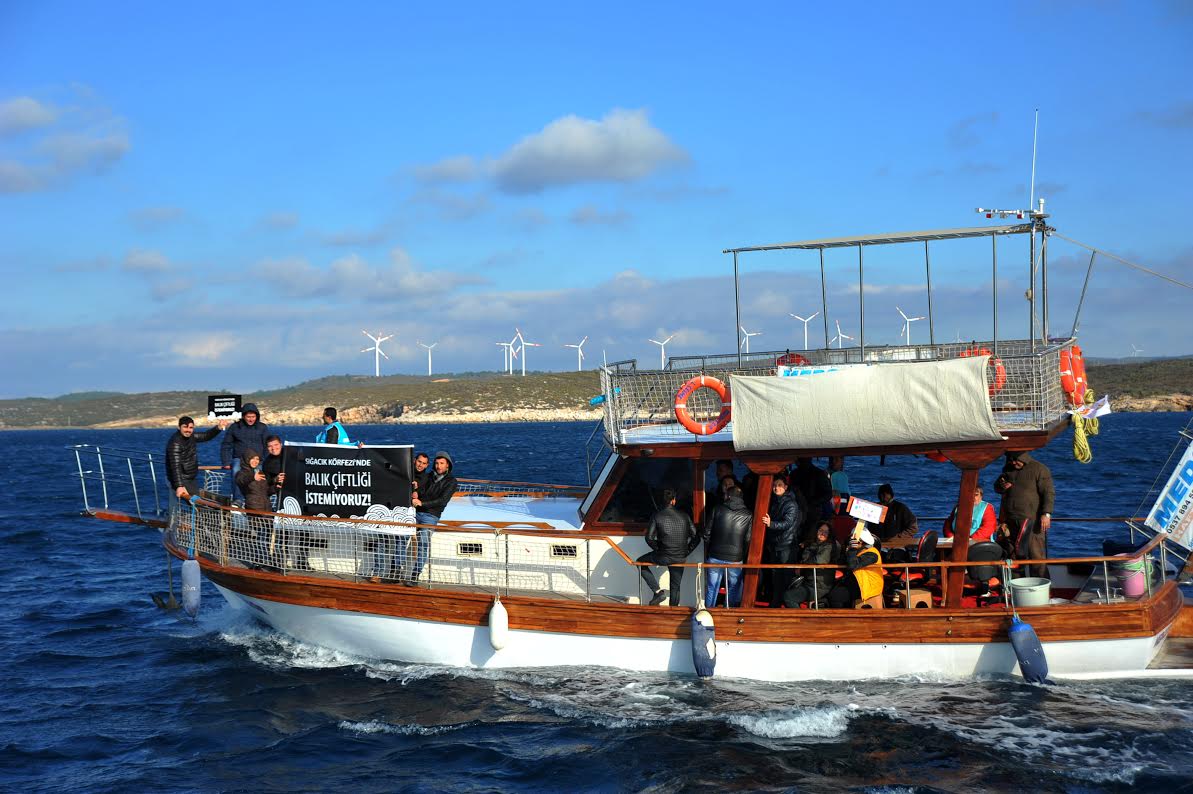 Seferihisar Belediyesi öncülüğünde, çevreciler, balıkçılar, doğacılar, sivil toplum kuruluşları, sendikalar, İzmir merkez ve çevre ilçe sakinleri bir araya geldi. Geçtiğimiz yıllarda akıntının yönünün Sığacık’a doğru olması nedeniyle iptal edilen aynı alana, yeniden ve 9 kat büyüklüğünde yeni bir balık çiftliği izni verilmesini etti. Vatandaşlar Sığacıklı balıkçılarla birlikte teknelerle denize açılarak balık çiftliğinin kurulacağı alana gitti ve tepkilerini pankartlar ve sloganlar eşliğinde gösterdi.