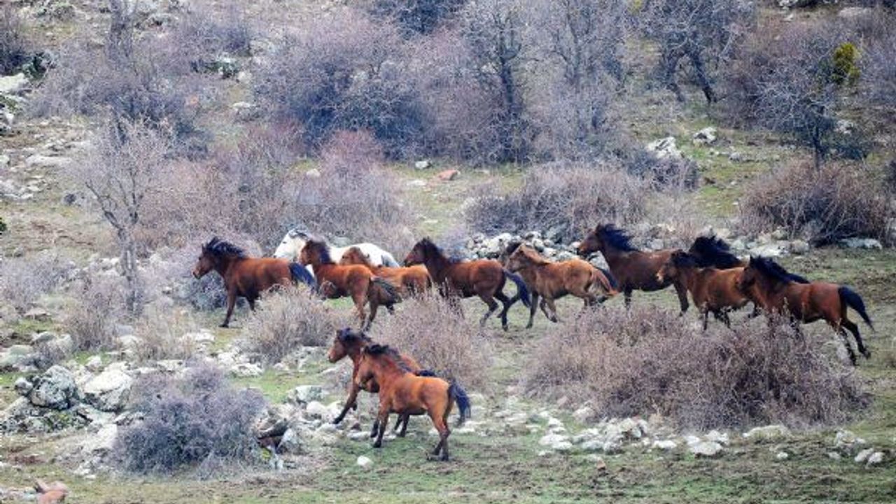Uşak ve Kütahya arasındaki Murat Dağı'nın güney cephesinde ilk olarak 2016'da sayıları 20 iken görüntülenen yılkı atlarının sayısı her geçen yıl artıyor.