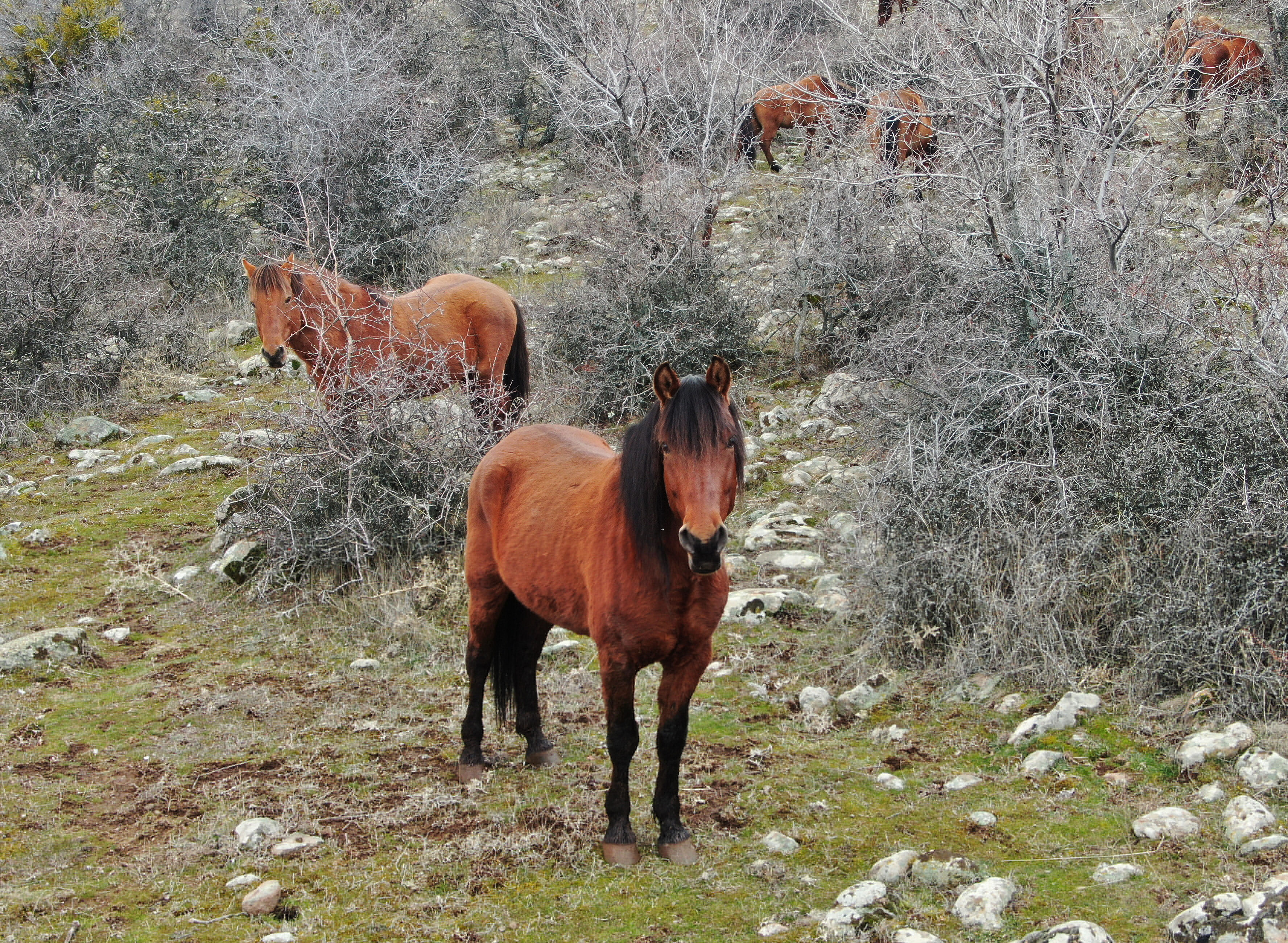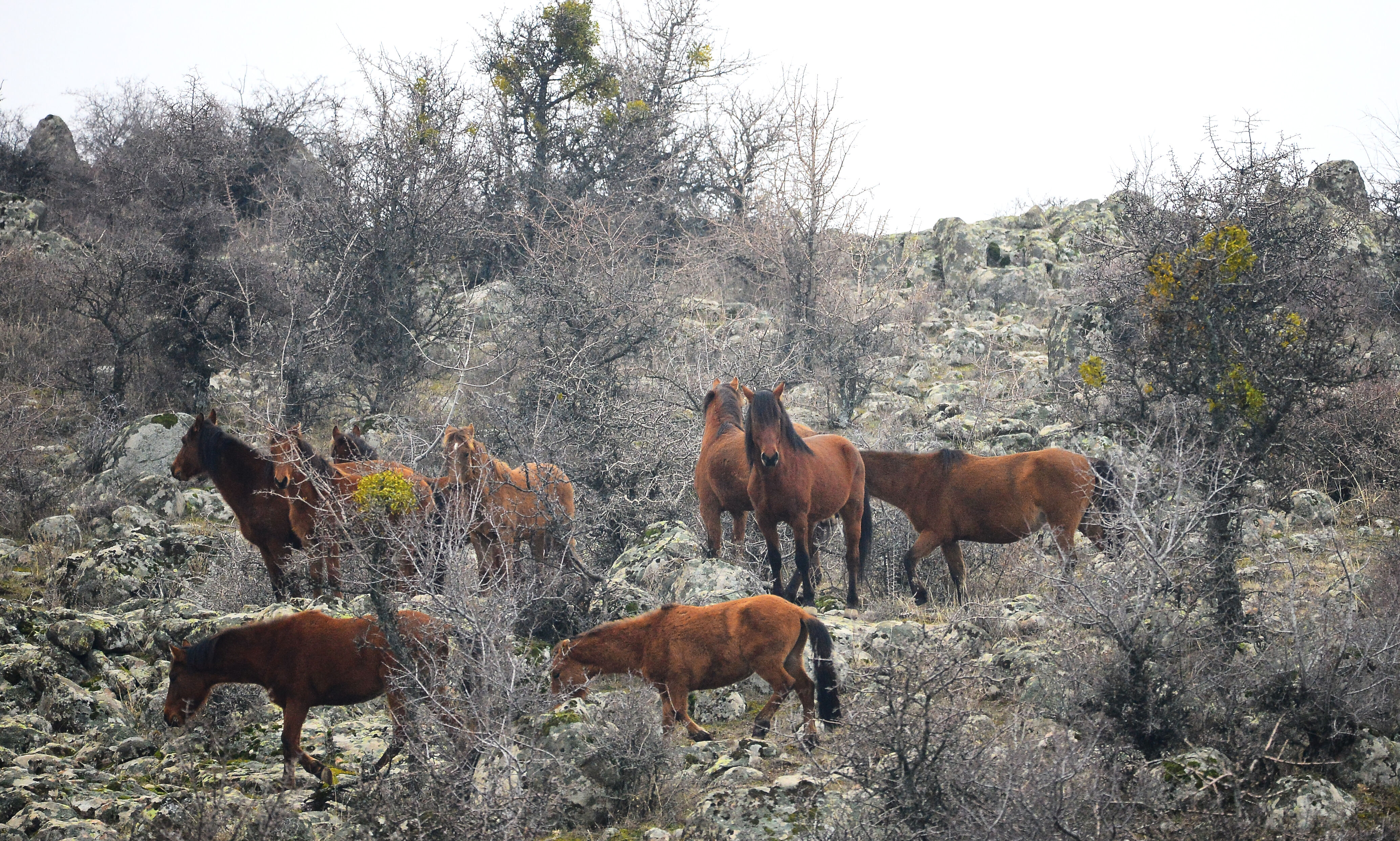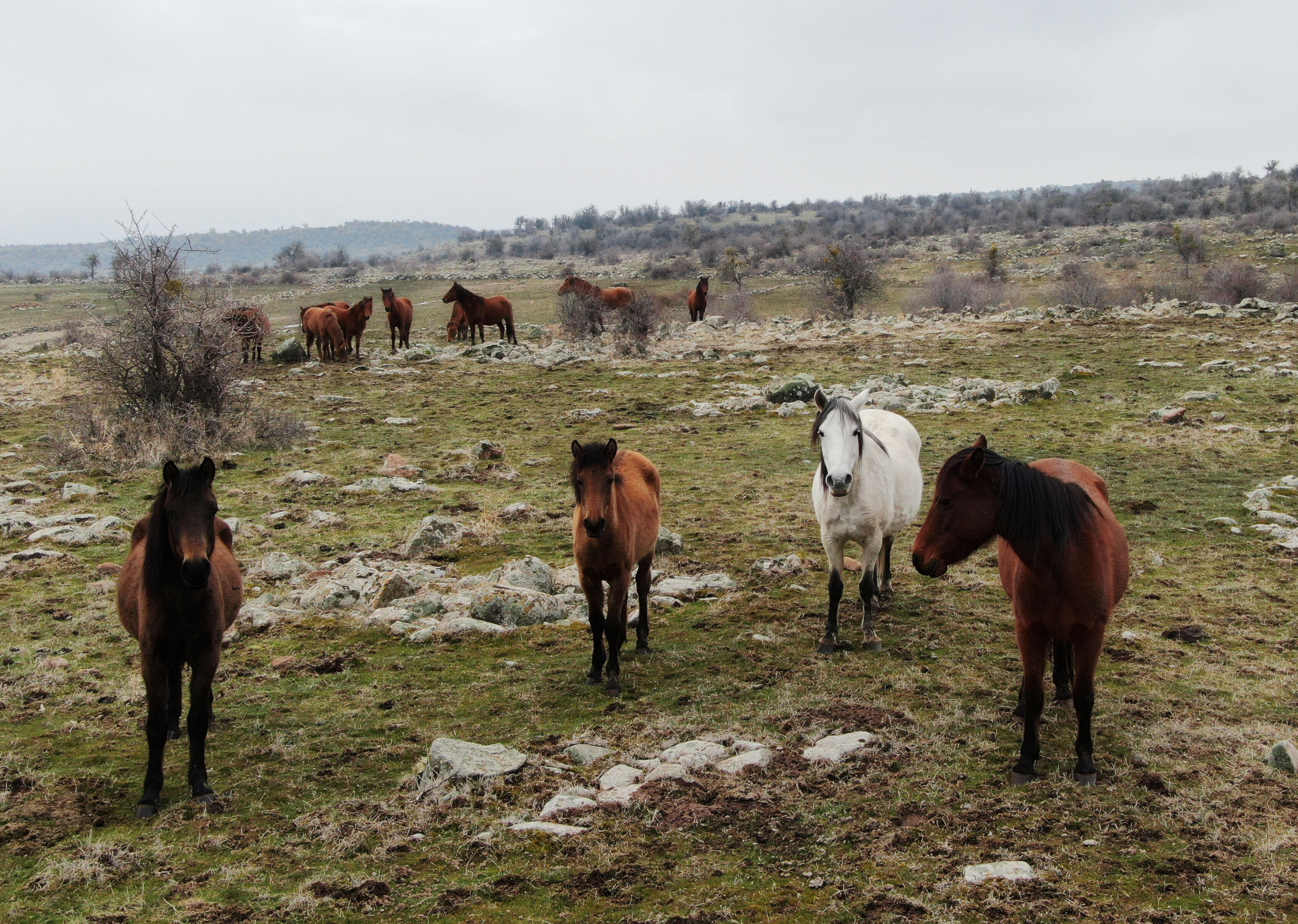 Murat Dağı eteklerinde üç ayrı sürü halinde yaşayan atlar, aşırı soğuklar nedeniyle daha korunaklı vadilerde yaşamlarını sürdürüyor. Yılkılar, taze otların bulunduğu alanlarda baharın gelişini bekliyor.