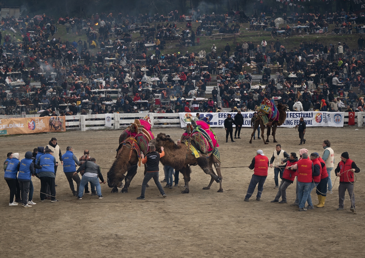Selçuk Belediyesinin katkılarıyla Selçuk Efes Kültür ve Turizm Vakfı tarafından Pamucak Güreş Sahası'nda gerçekleştirilen etkinlikte, Ege, Akdeniz ve Marmara bölgelerinden getirilen develer mücadele etti.