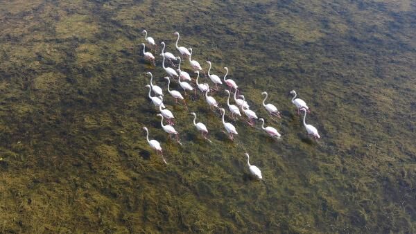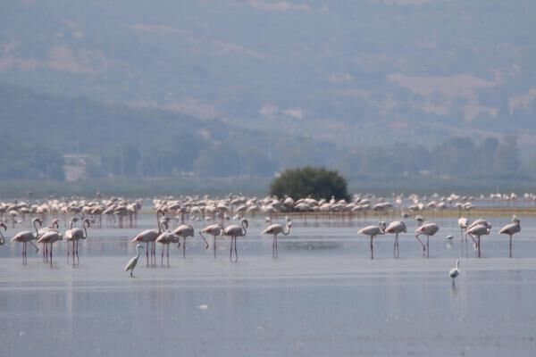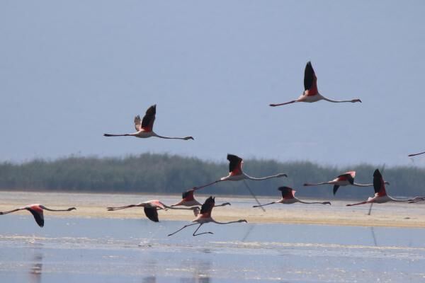 Aydın'ın Söke ilçesinin doğa cenneti Serçin Mahallesi, sonbaharın gelmesiyle birlikte yine flamingoların akınına uğradı.