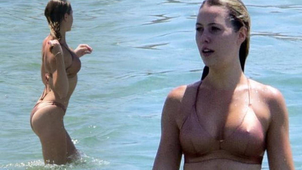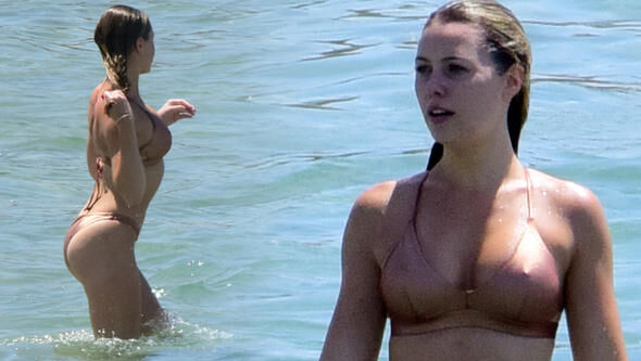 Eşiyle uzun süre güneşlenen Loughnan, sıcağa dayanamayıp denize girdi. Model denizde yüzerken Serdar Ortaç ise güneşlenmeye devam etti.