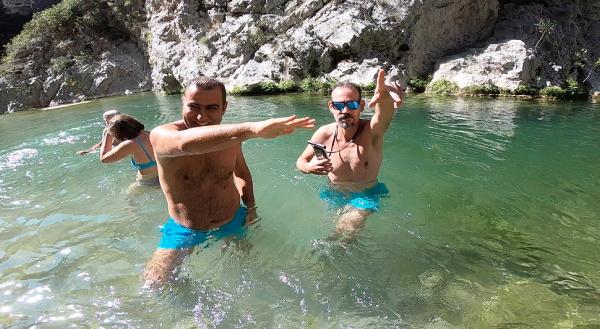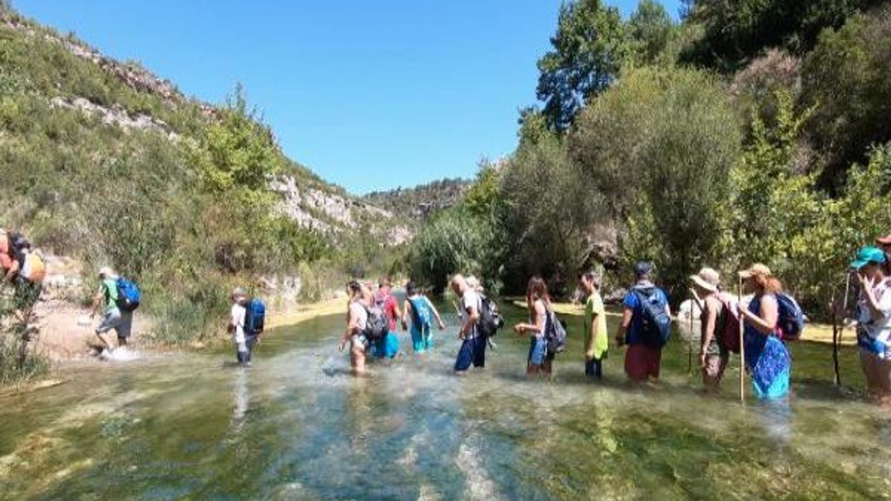 Yaz mevsiminin son günleri olmasına rağmen hava sıcaklığının 35 derece olduğu Antalya'da serinlemek için deniz ve su parklarına alternatif olarak kanyona gelenler, su yürüyüşü yapıyor. Yerli halkın yanı sıra yabancı turistlerin de katıldığı suda yürüyüş etkinliği yoğun ilgi görüyor.
