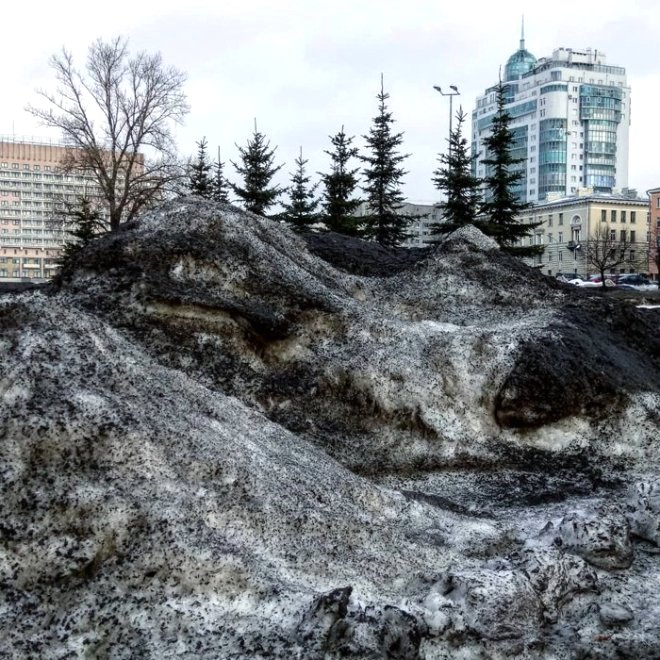 Rusya'nın Sibirya bölgesindeki Kemerova kentine yağan siyah kar, panik yarattı.