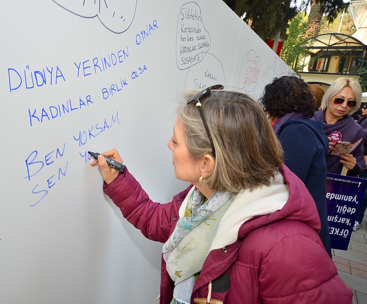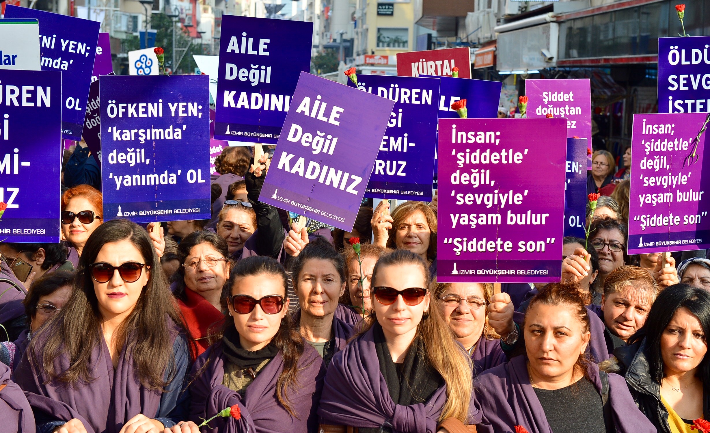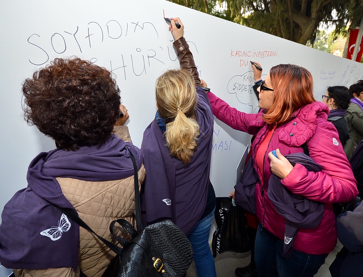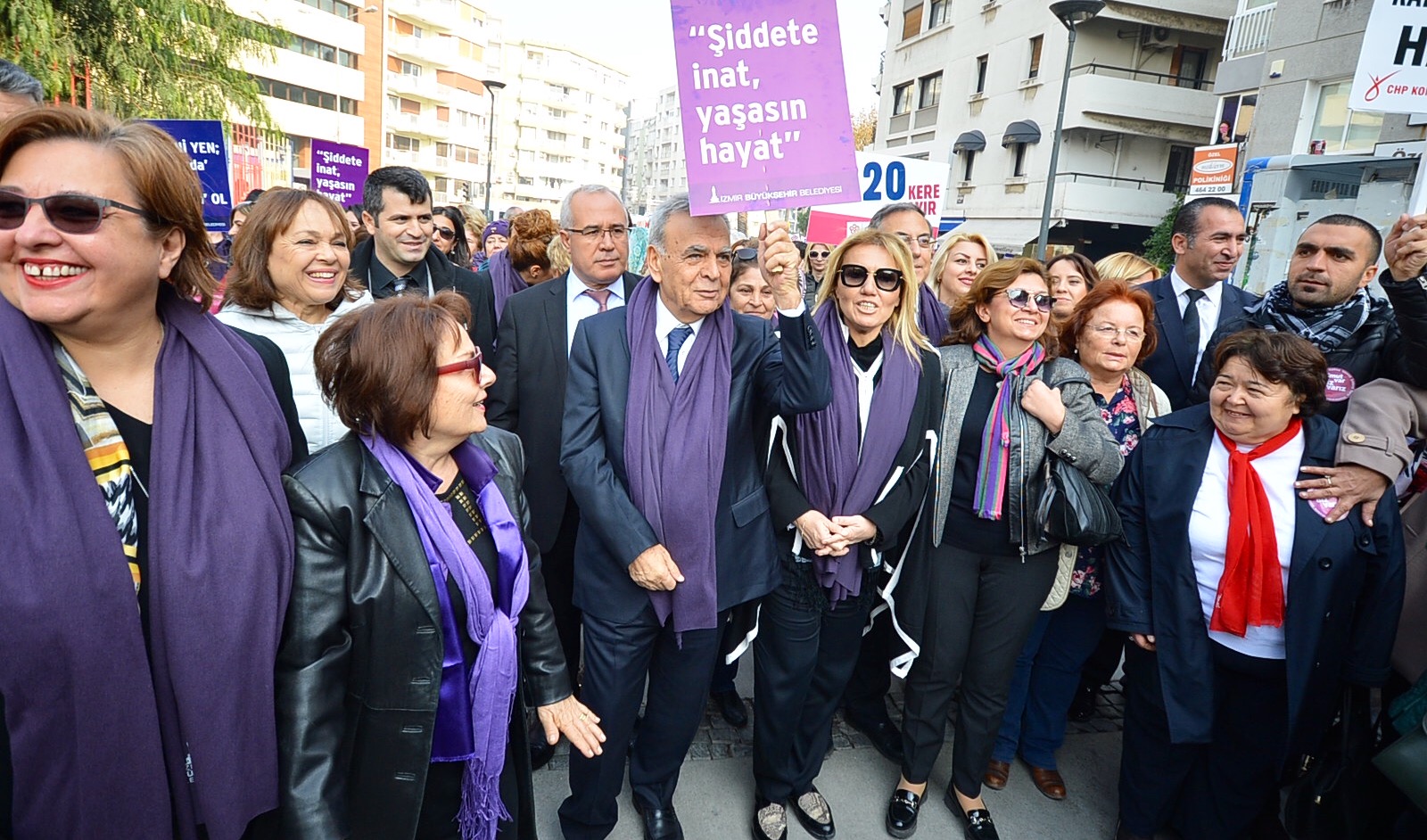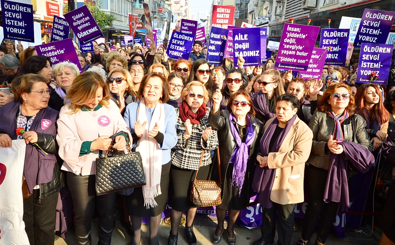 İzmirli kadınlar, Büyükşehir Belediyesi’nin, ‘25 Kasım Uluslararası Kadına Yönelik Şiddete Hayır Günü’ dolayısıyla düzenlediği etkinlikte buluşarak giderek artan kadın cinayetlerine, cinsel istismara ve Türkiye’nin kanayan yarası ‘çocuk gelinler’e dikkat çekti. Kadınları yalnız bırakmayan Başkan Aziz Kocaoğlu, haksızlığa karşı direnme ve birlik olma çağrısı yaptı.