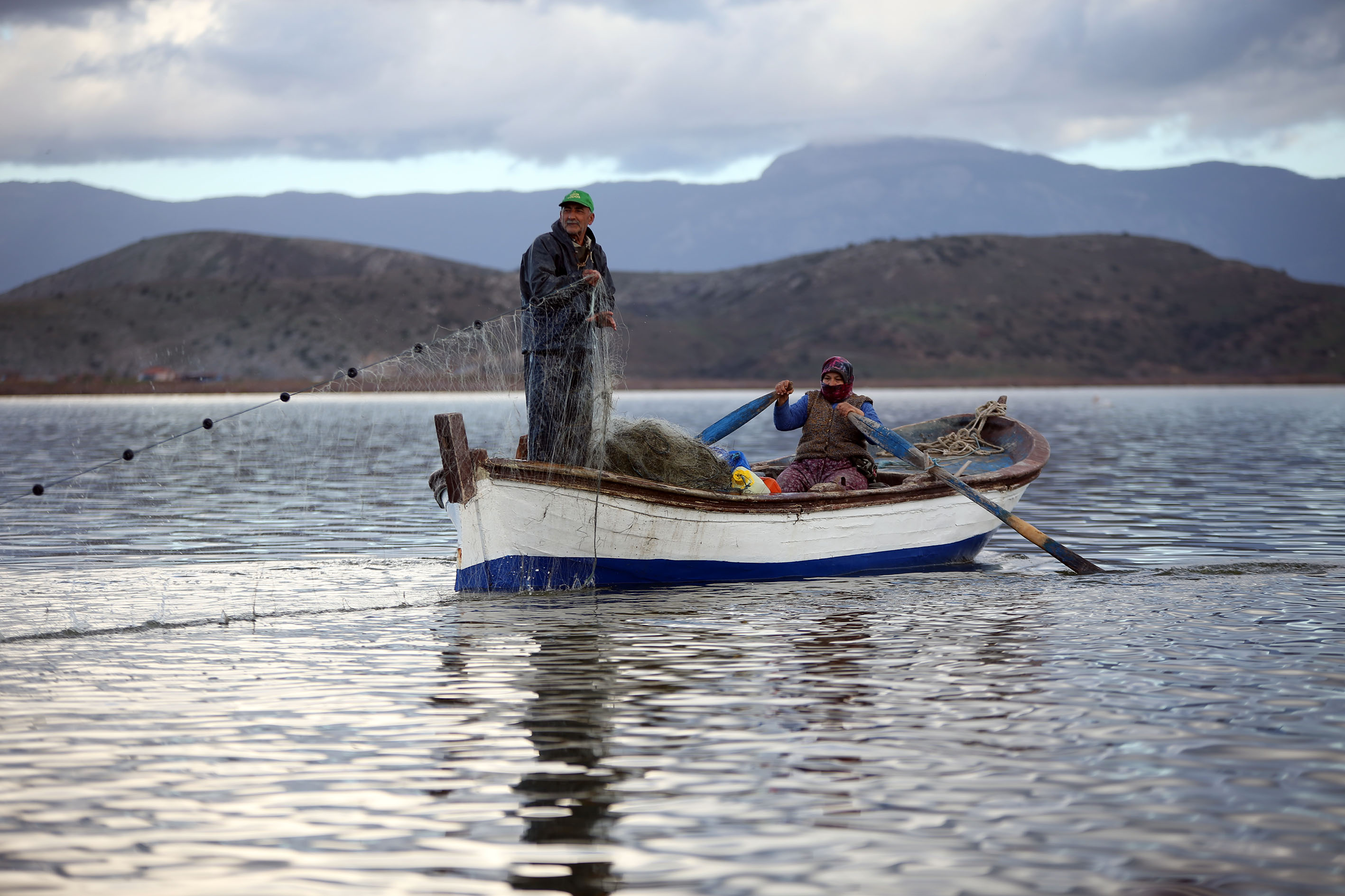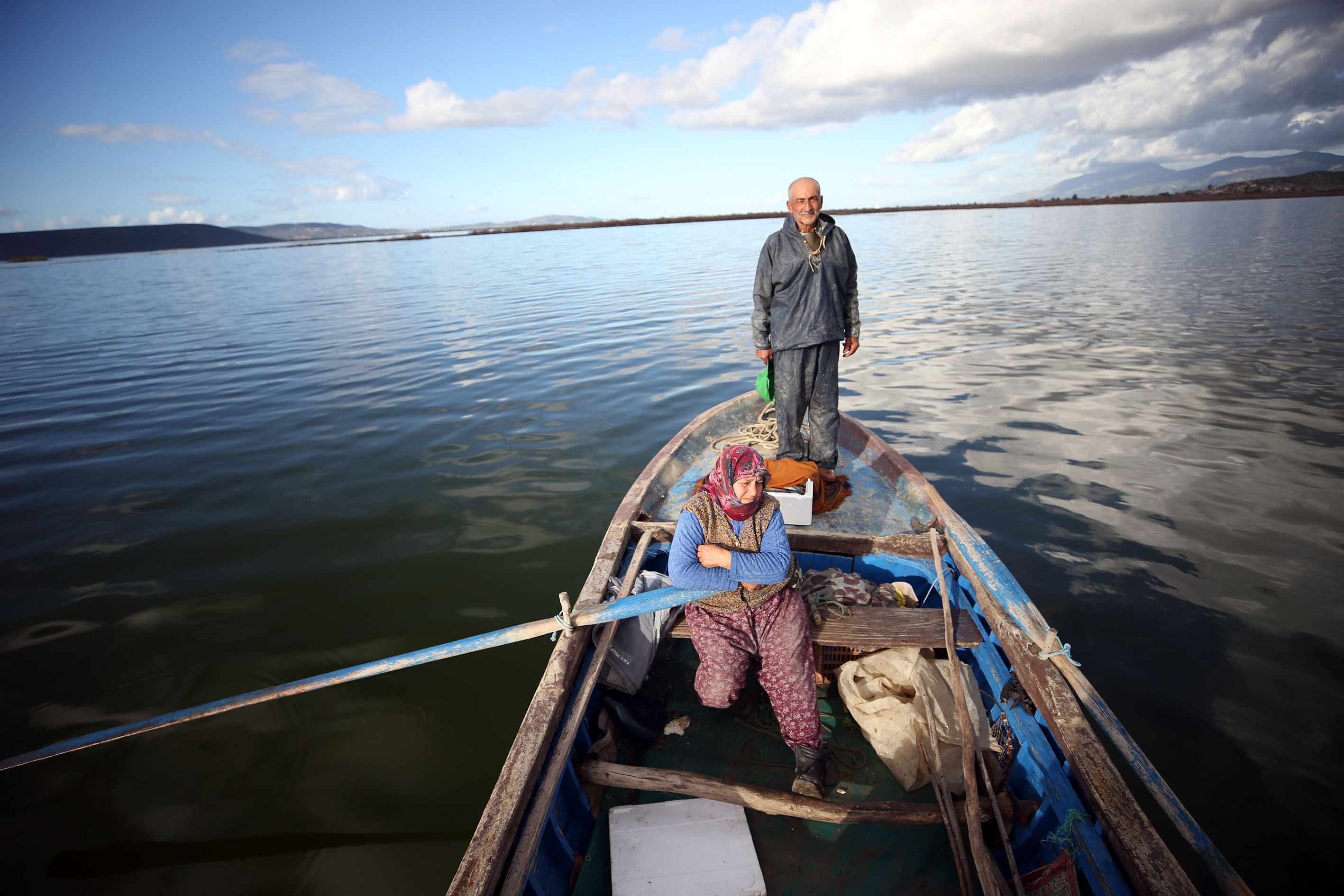 Gölün hemen yakınındaki mütevazi evlerinde yaşayan iki çocuk sahibi çift, günün ilk ışıklarıyla yola koyuluyor. Zor olmasına rağmen kayığın kürekleri Ayşe Özbaşı'na emanet. Mehmet Özbaşı ise ağları göle atarak balıkları çıkarıyor. Özbaşı çifti, genellikle kefal, yılan balığı ve levrek gibi balıkları avlayarak geçimlerini sağlıyor.