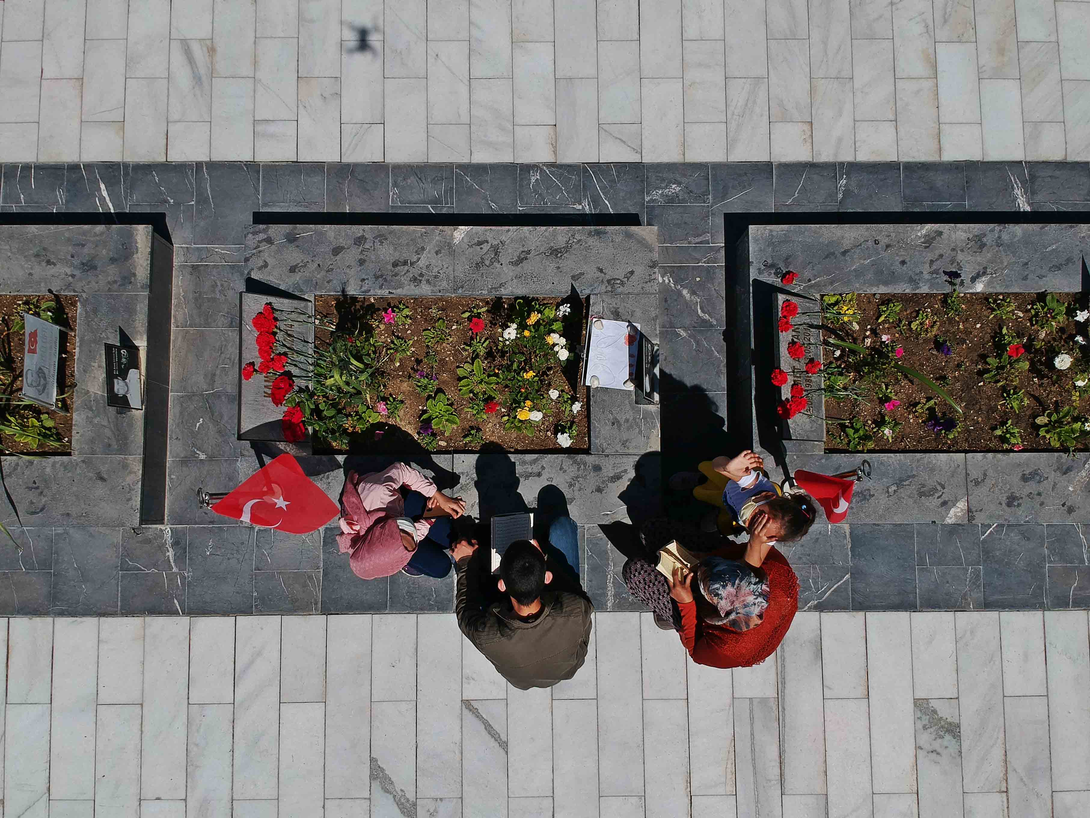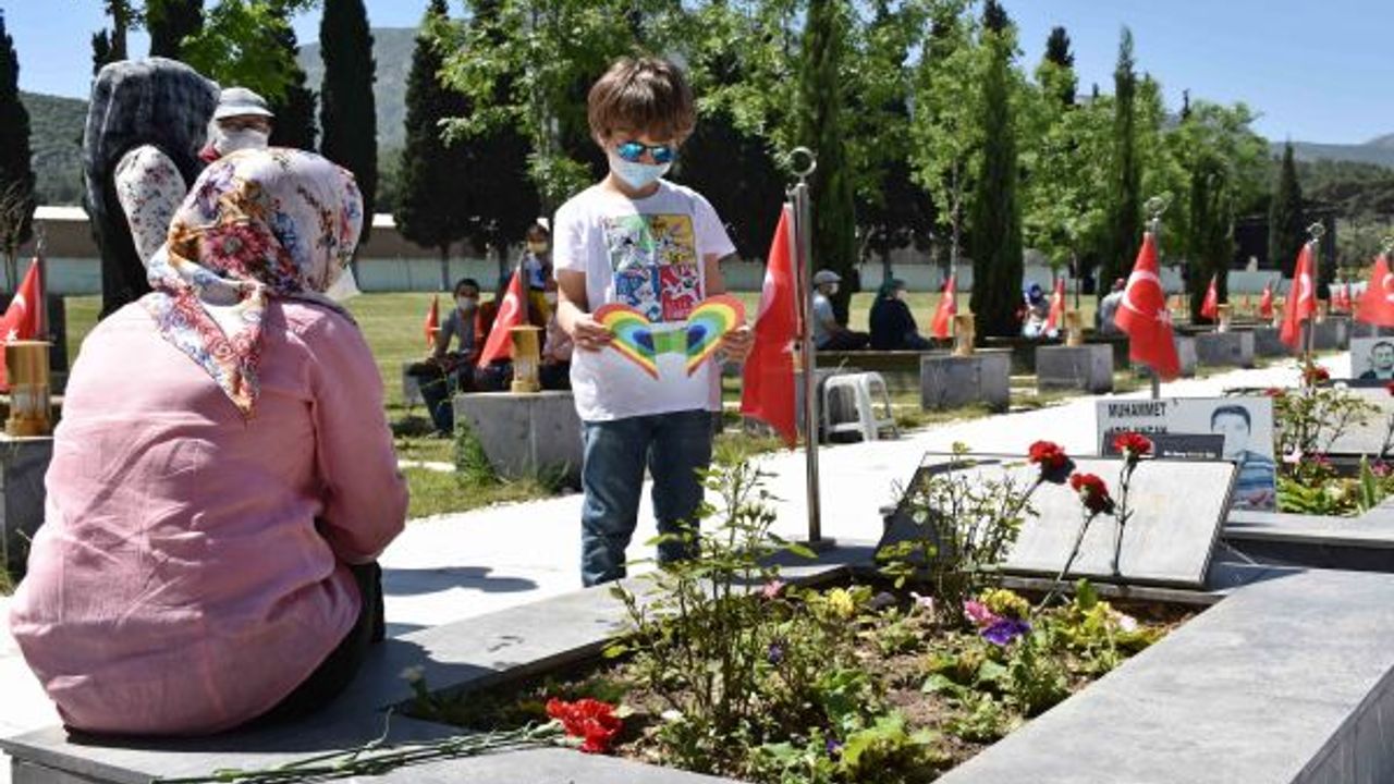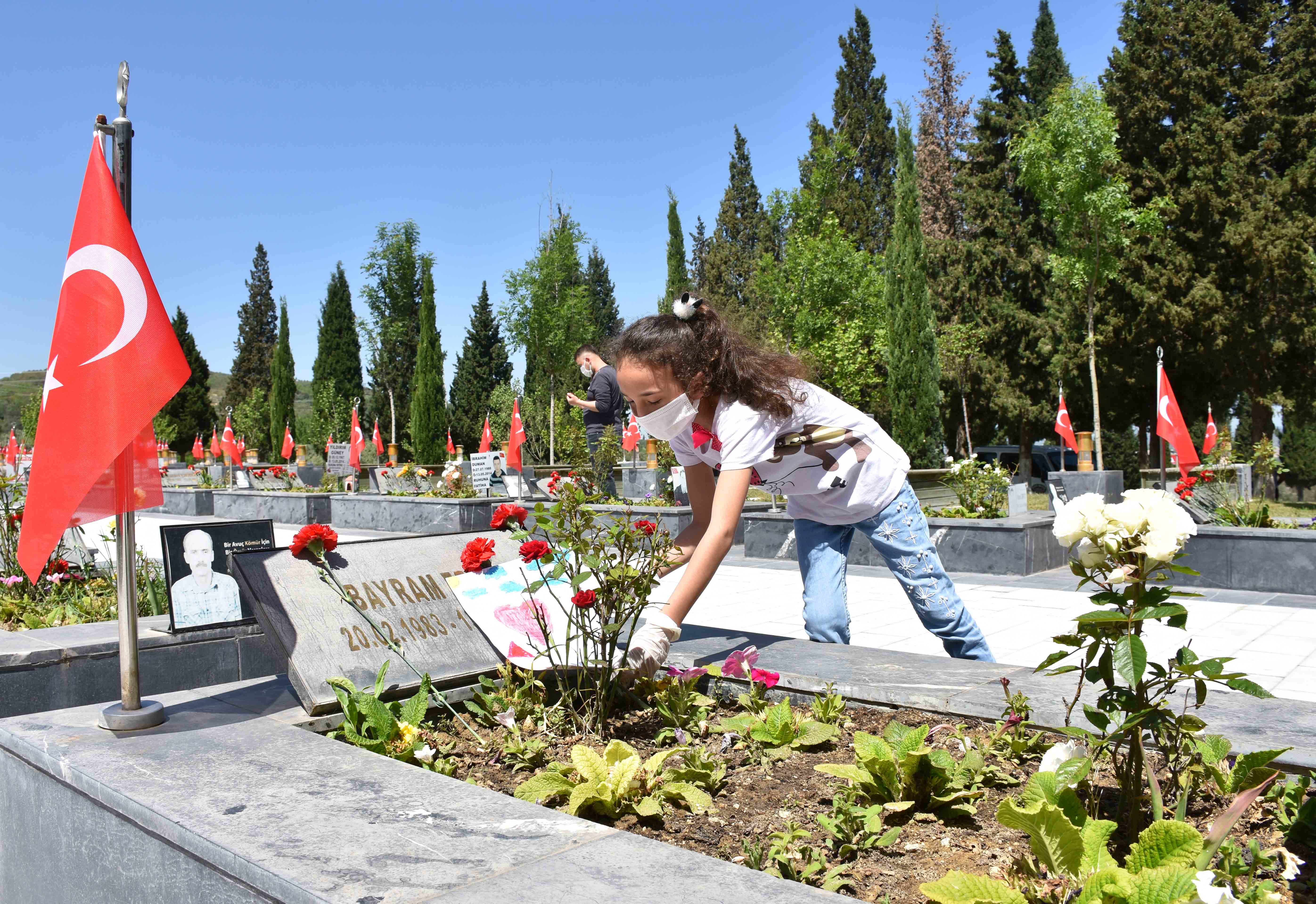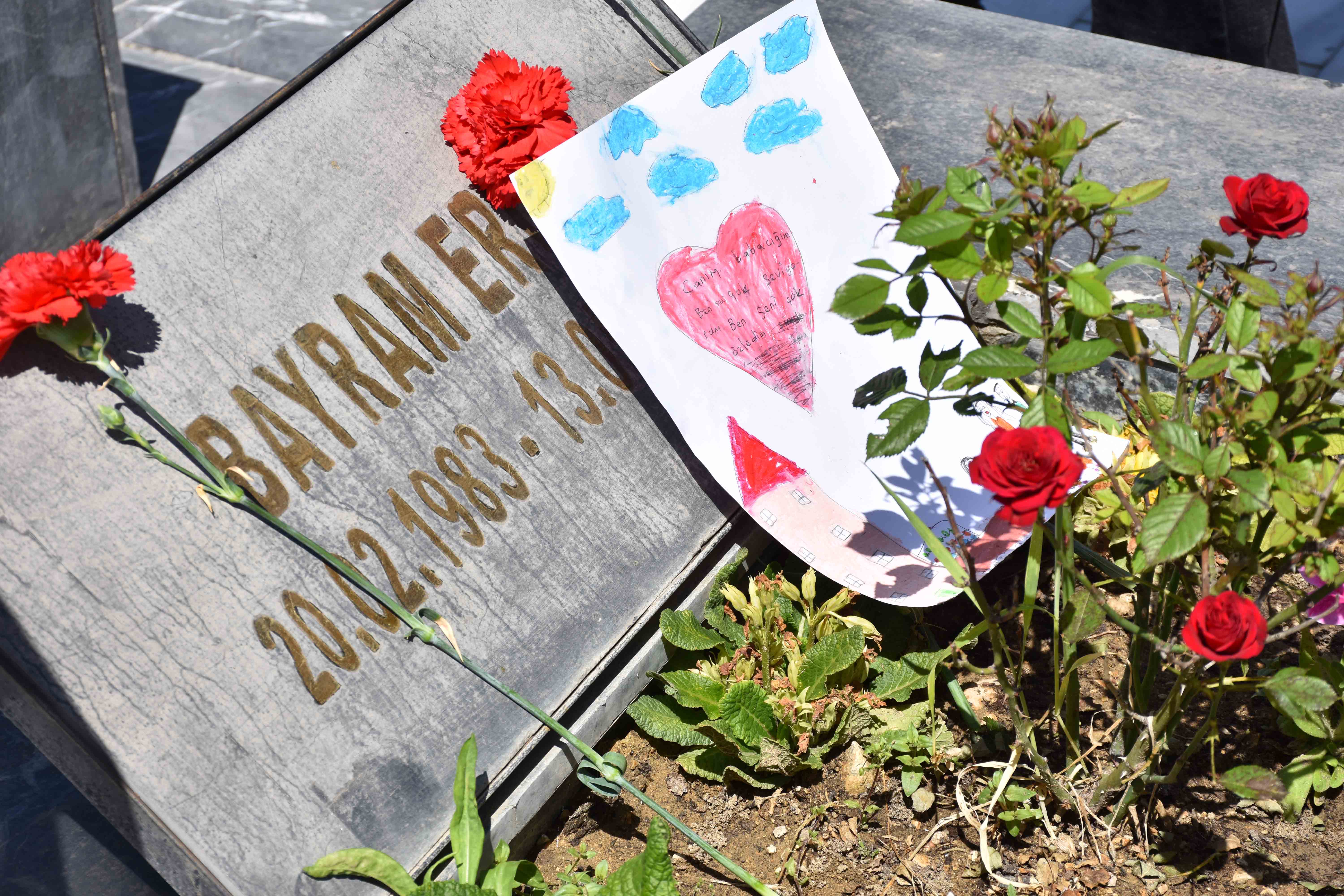 5 yaşındaki Ravza ile 11 yaşındaki Sudenur Çal kardeşler, babaları Kamil Çal'ın kabrini gelip dua edenler arasındaydı. Küçük Ravza, babasının mezarına onun için çizdiği resmi bıraktı.