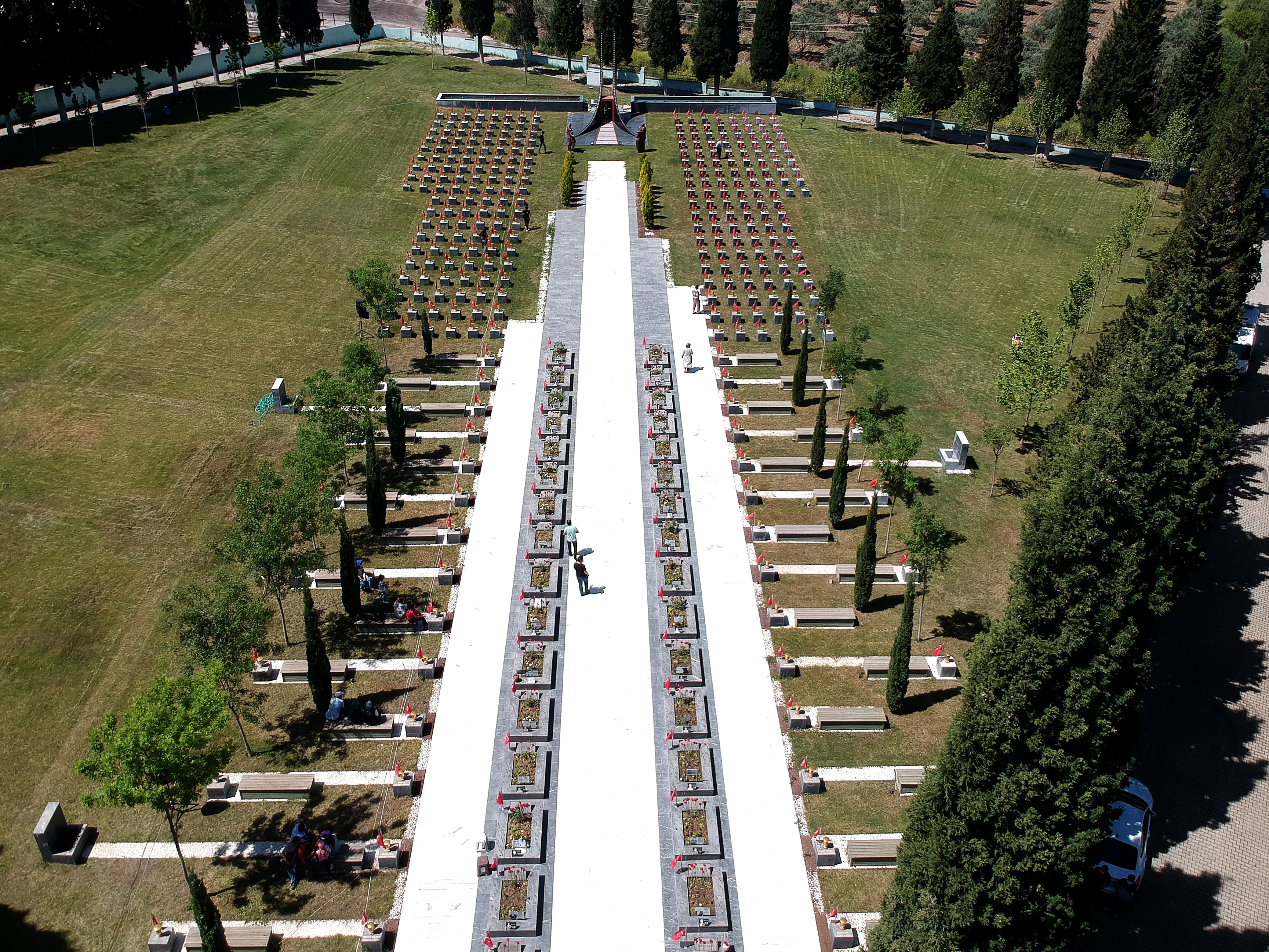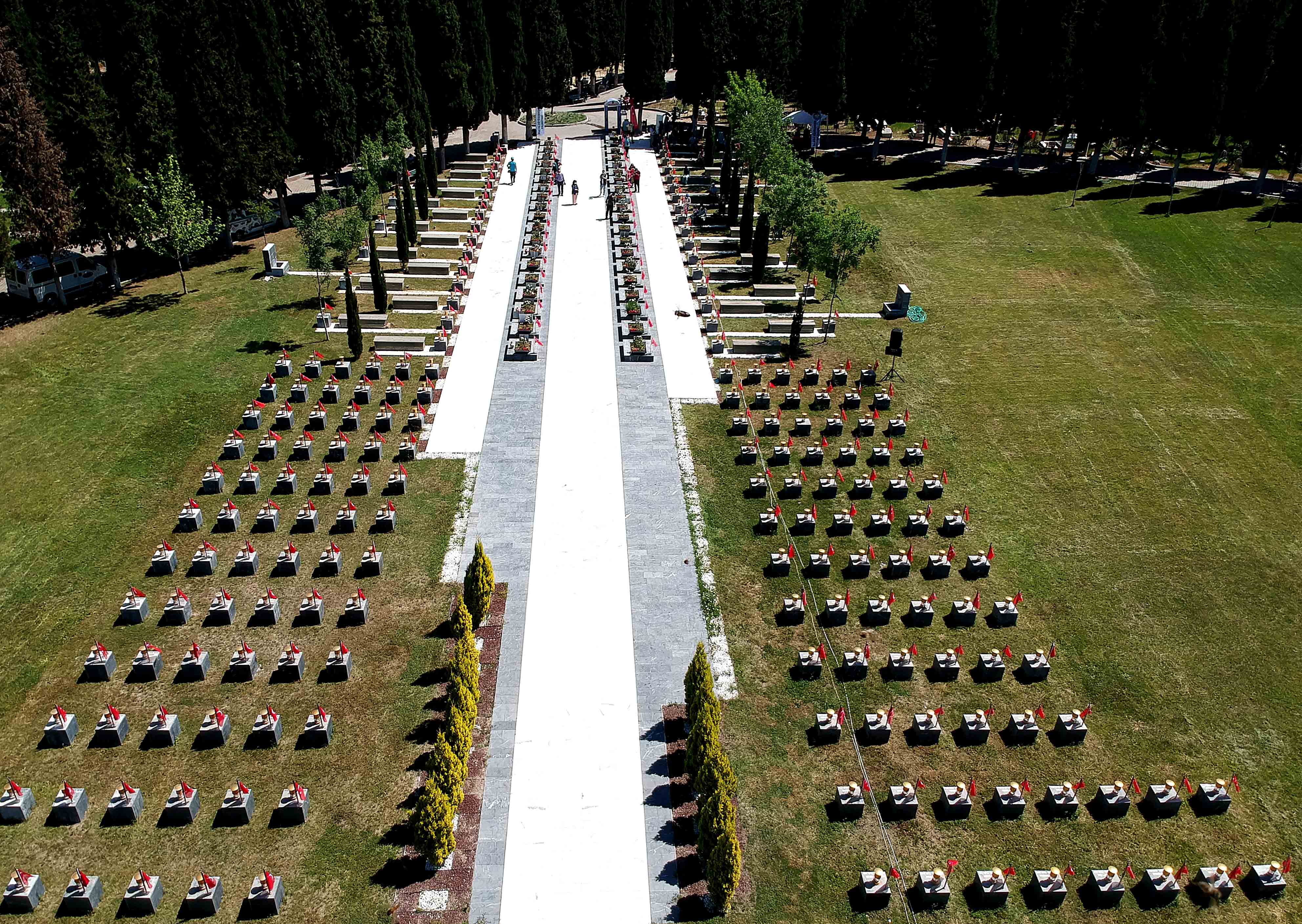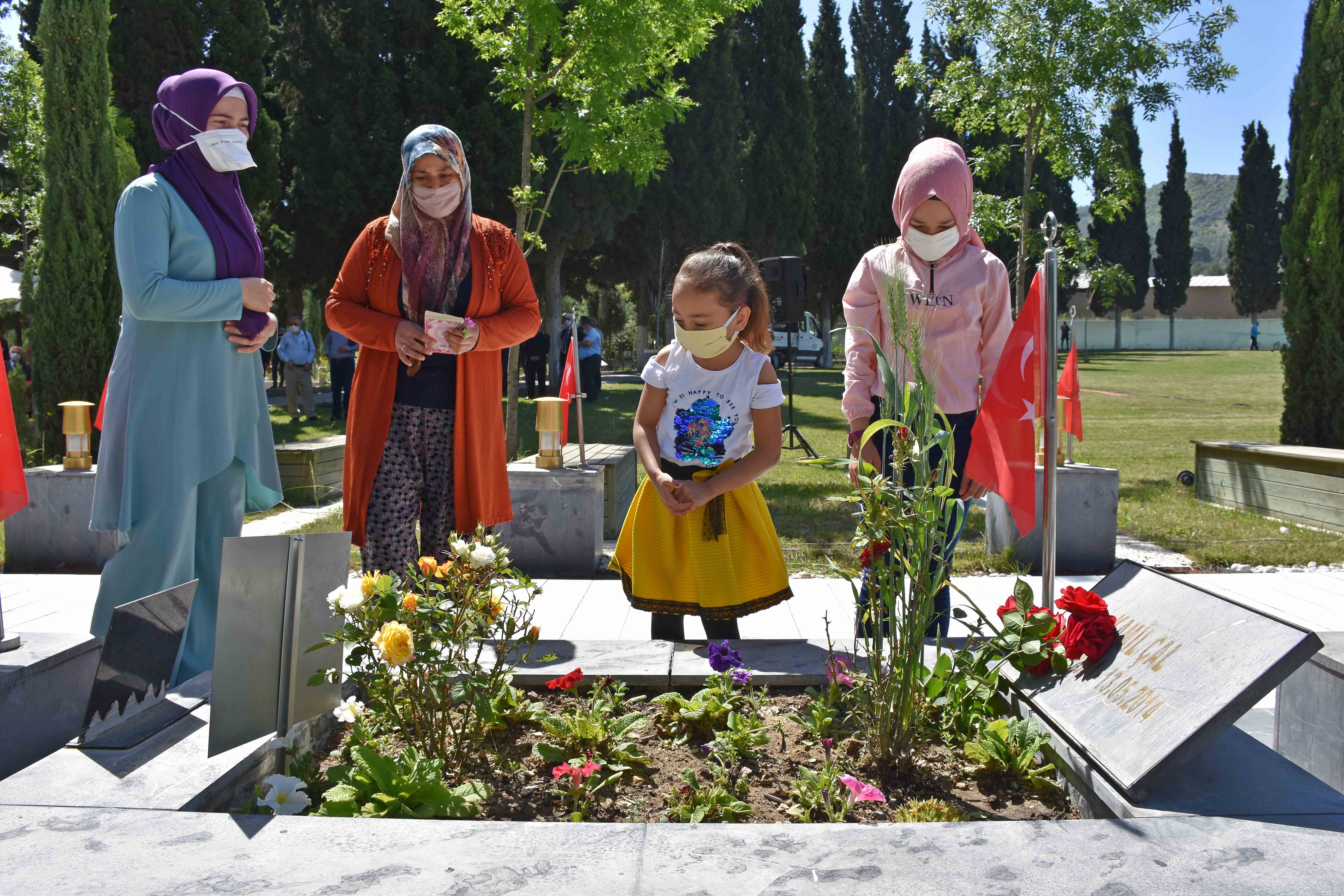 Gözü yaşlı aileler, yakınlarının kabrine karanfil bıraktı.