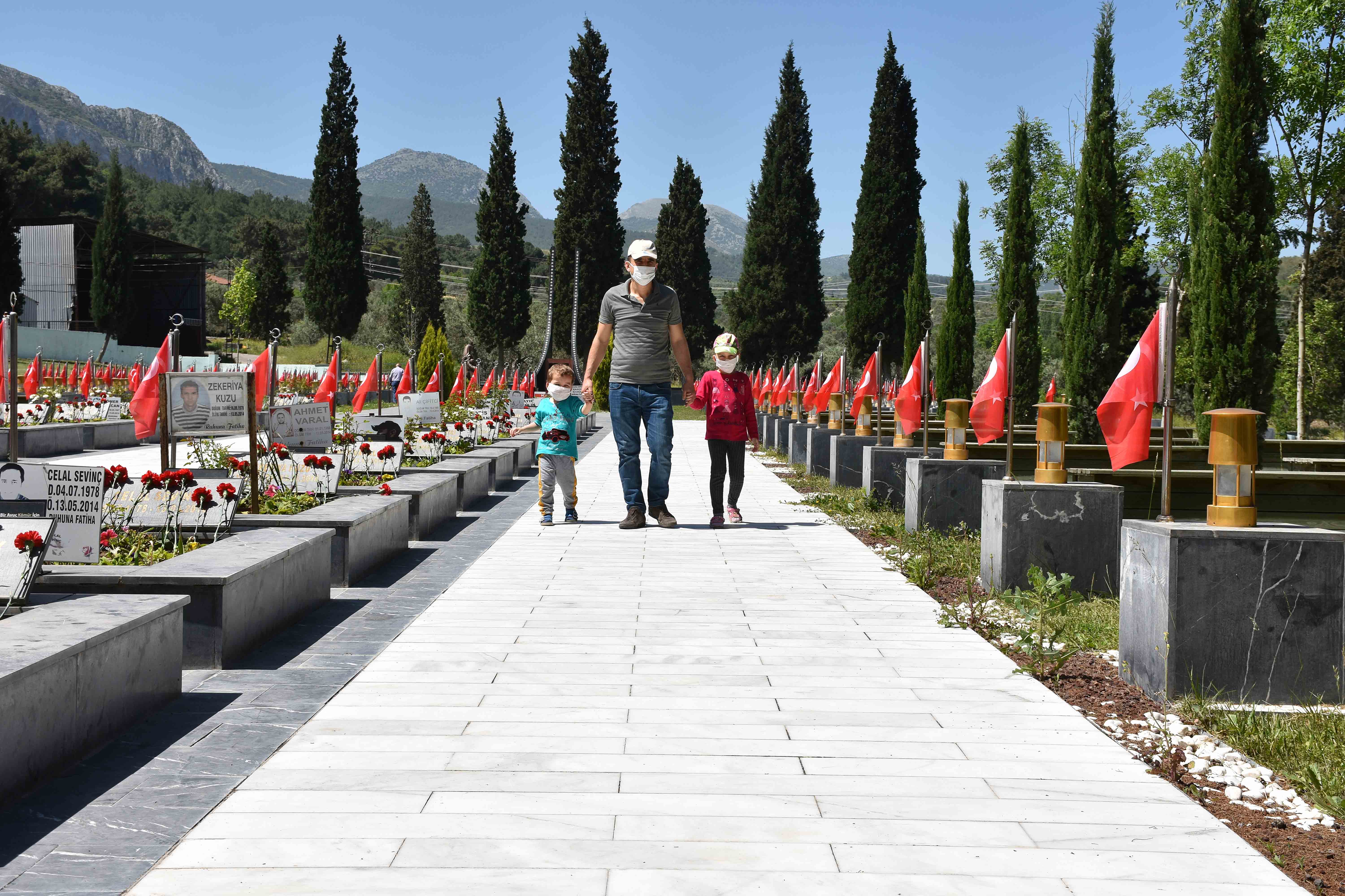 Kovid-19 tedbirleri kapsamında şehitliğe hijyenik maske ile gelen vatandaşlar, şehitlik girişindeki dezenfektan tünelinden geçti. Kur'an-ı Kerim'in okunduğu programda, şehit madenciler için dua edildi.