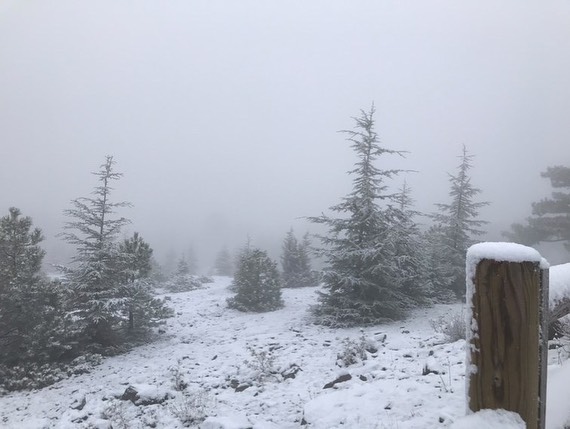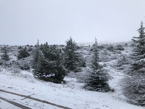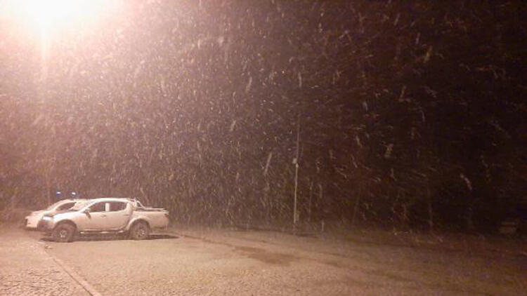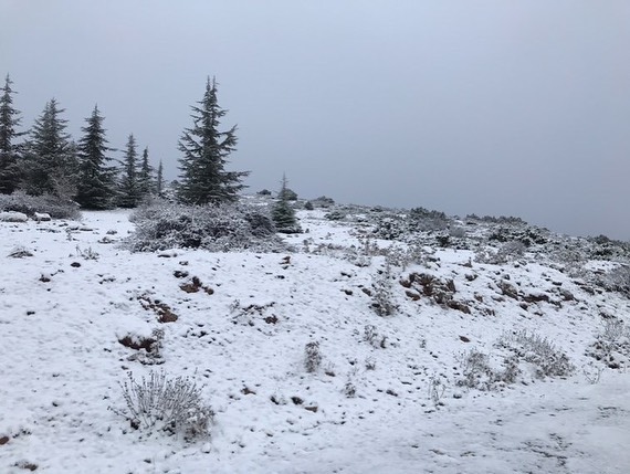 Manisa'nın 1517 metre yüksekliğindeki Spil Dağı Milli Parkı'na mevsimin ilk karı düştü.