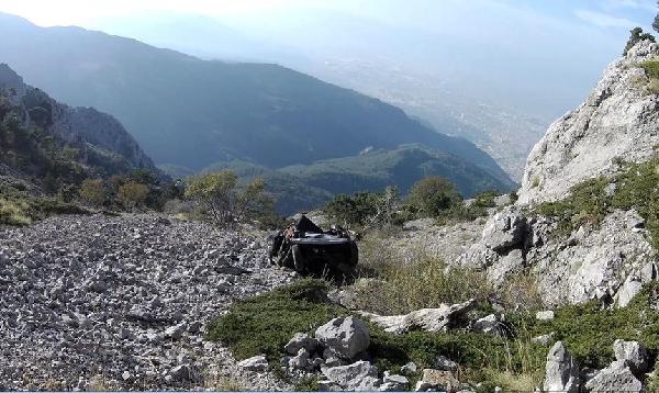 Erdek, kaza yaptıkları yerden çıkartılamayan bu iki aracı, tırmanış sırasında kask kamerasıyla görüntüledi.