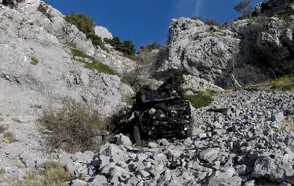 Türkiye'nin tek solo alpinisti olan Erdek Cennet, '81 il 81 Zirve Solo Tırmanış Anadolu Parsı Unvanı Projesi' kapsamında, bin 517 rakımlı Manisa Spil Dağı zirve tırmanışı sırasında araç yolunun bulunmadığı kısımlarda hurdaya dönmüş iki araç buldu.